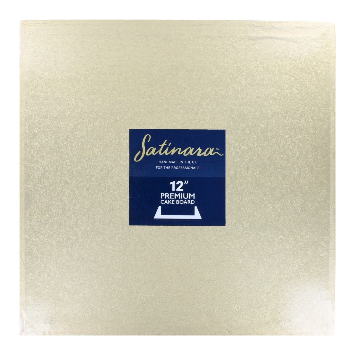 This single 12" square (304mm) pale gold cake board is supplied individually labelled and shrink wrapped for an additional layer of protection.