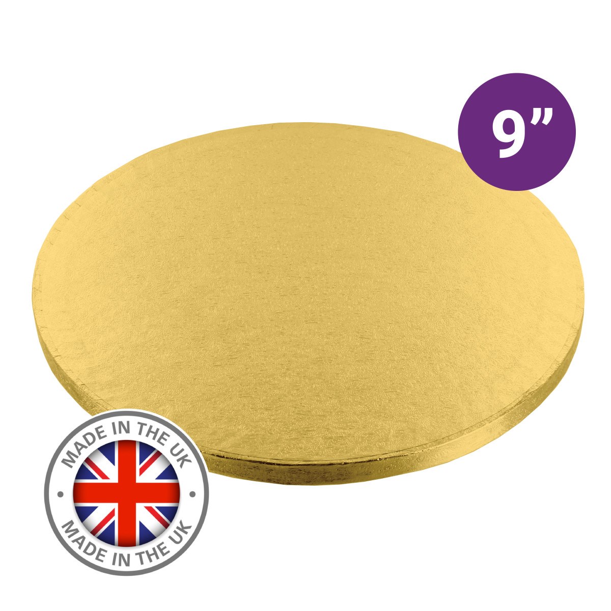 Premium 9" round single gold cake board for professional cake makers, bakeries and catering businesses. A Culpitt cake board offers superior strength, reliability and presentation for the most exceptional cakes.