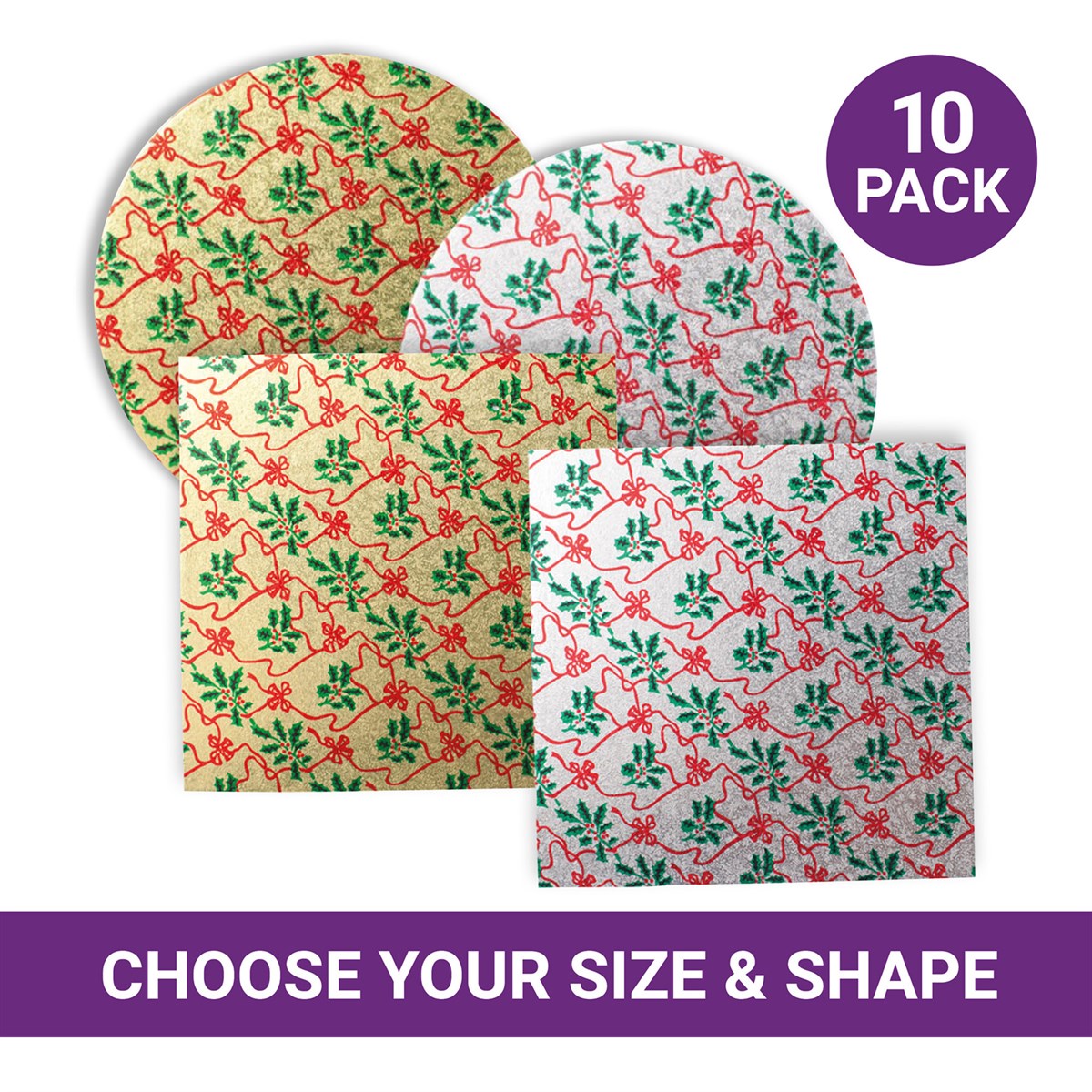 These 9" assorted round Christmas double thick cake cards are the perfect way to display your Christmas cakes in style.