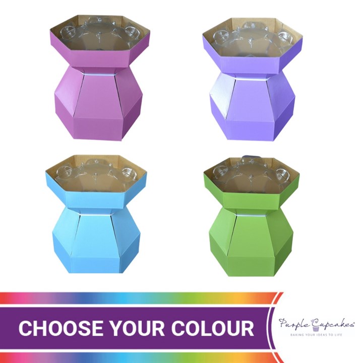 Includes cardboard box and invisiTray™, designed to hold your decorated cupcakes securely. Will hold 7 standard size cupcake cases (50mm dia base).