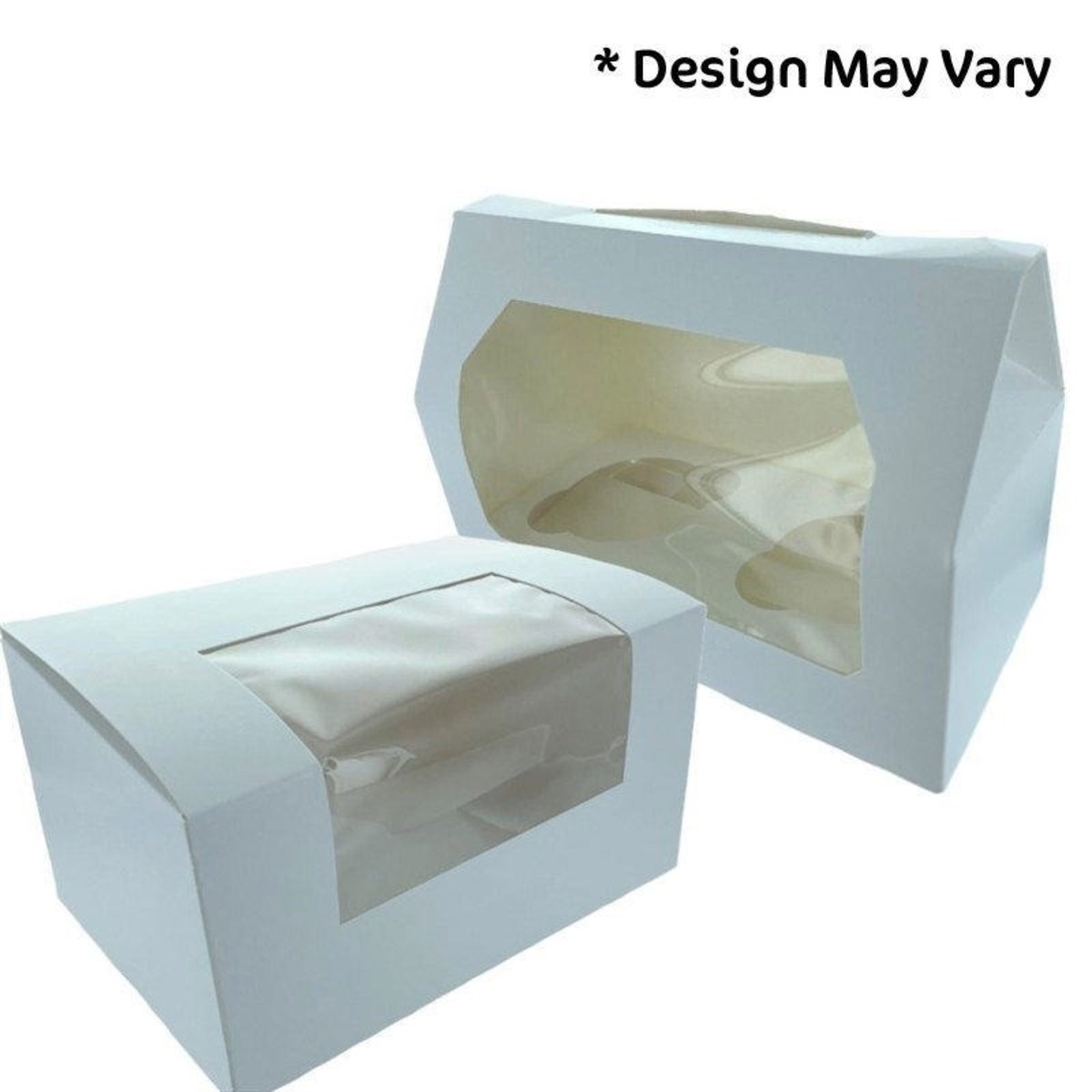 This white 2 cavity cupcake box comes with a transparent lid and an insert to hold the cupcakes in place.