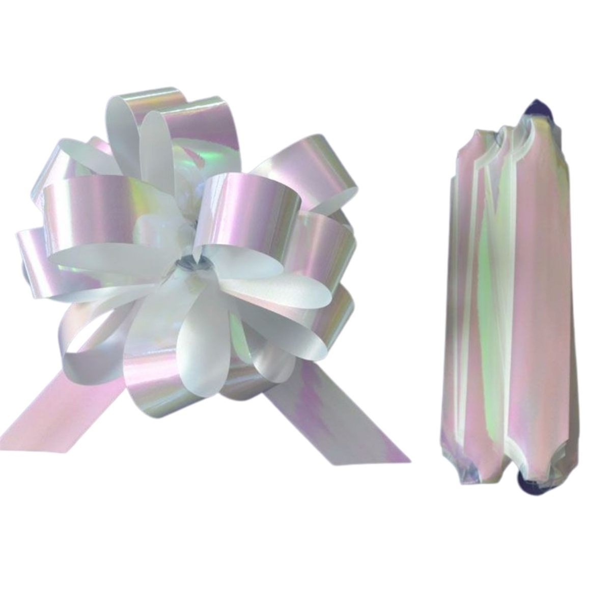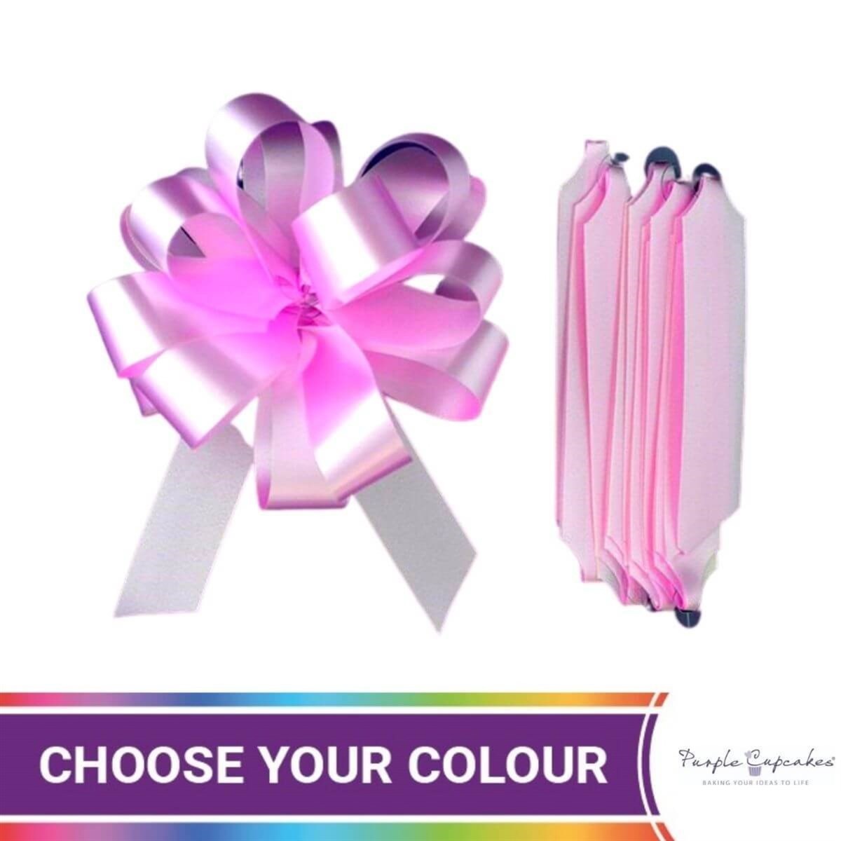 To use, simply find the thin ribbon between the tails of the bow. Hold the ends of the thin ribbon with one hand and start pulling them towards yourself, whilst pushing the rest of the ribbons away - the bow will automatically form. Tie the thin ribbon to hold the bow in place.