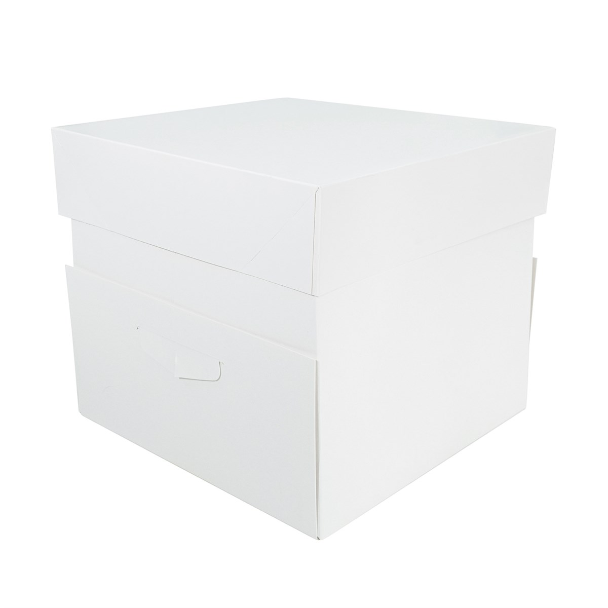 This best quality UK-made 12 inch white StandardPLUS cake box is 9” tall, perfect for single tier cakes with more elaborate icing and decorations.