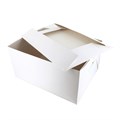 These extra large white oblong cake boxes with lids come folded and flat packed for convenient storage.