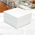 This single white cake box with lid comes folded and flat packed for convenient storage. The box base is quick and easy to assemble. The pre-glued lid fit perfectly on top.