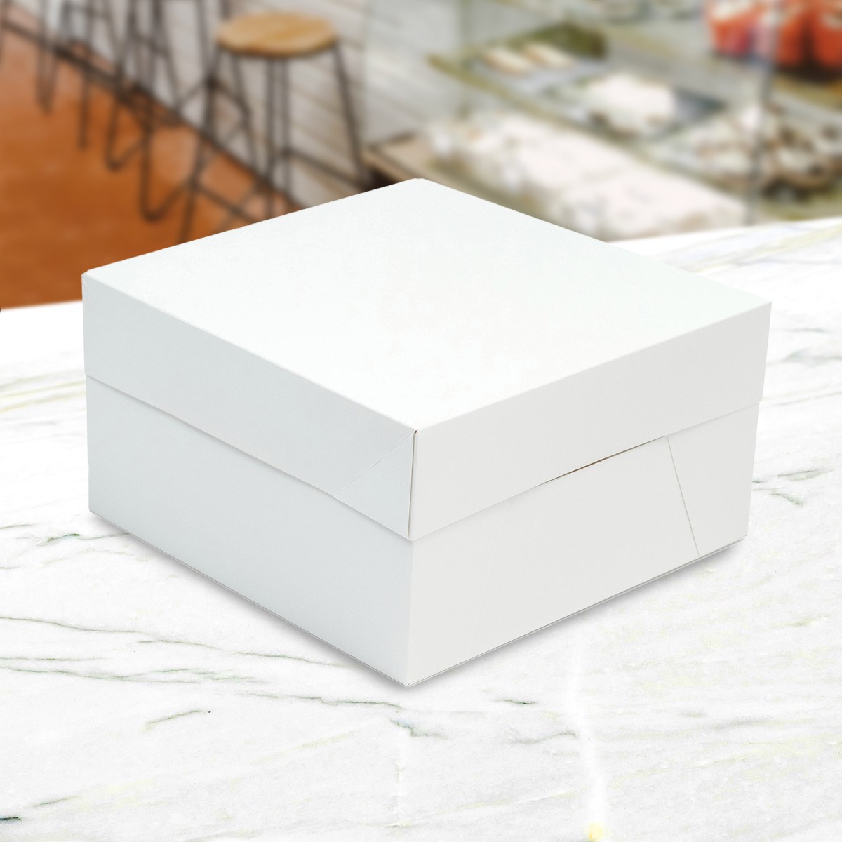 We recommend using this box with the same sized cake board to achieve maximum rigidity and support for your cake, and always carry the box from underneath to help prevent damage.