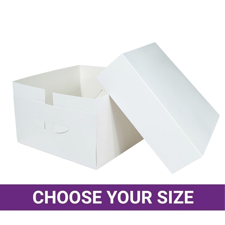 We recommend using this box with the same sized cake board to achieve maximum rigidity and support for your cake, and always carry the box from underneath to help prevent damage.