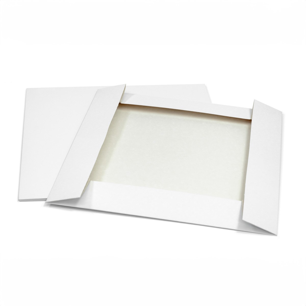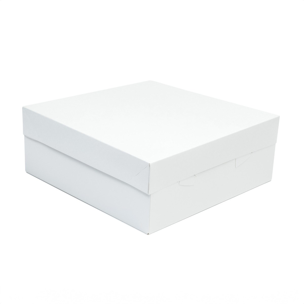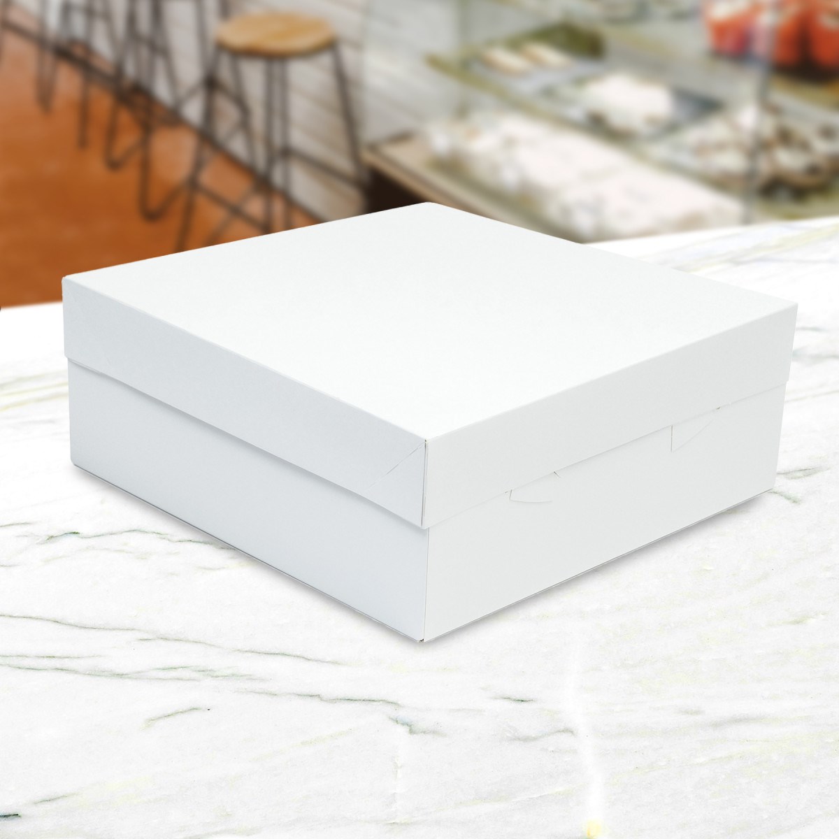 These white cake boxes with lids come folded and flat packed for convenient storage. The box bases are quick and easy to assemble. The pre-glued lids fit perfectly on top.