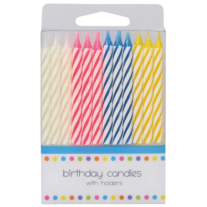 Celebrate that special birthday in style with these Candy Stripe Candles. These brightly coloured candles are perfectly suited to both adult's and children's birthday cakes alike. Each candle has it's own pic so you can arrange them as you like.