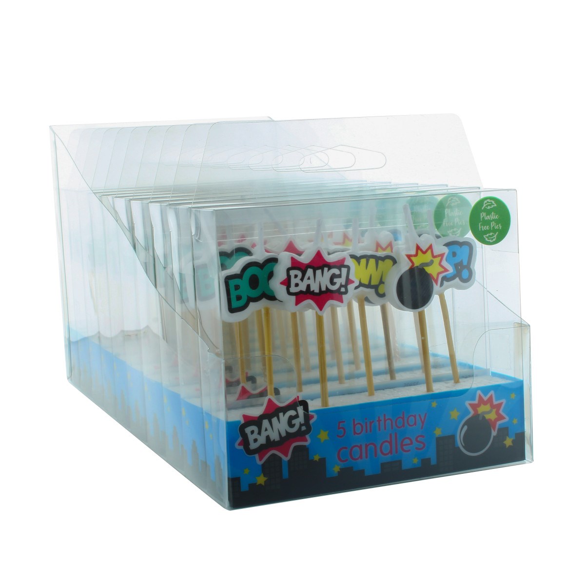 Celebrate that special birthday in style with these superhero themed candles. Each candle has it's own bamboo pic so you can arrange them as you like. Matching decorations also available