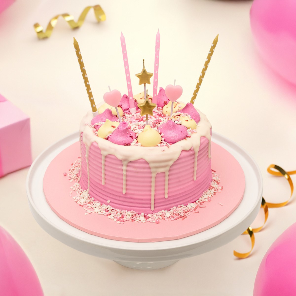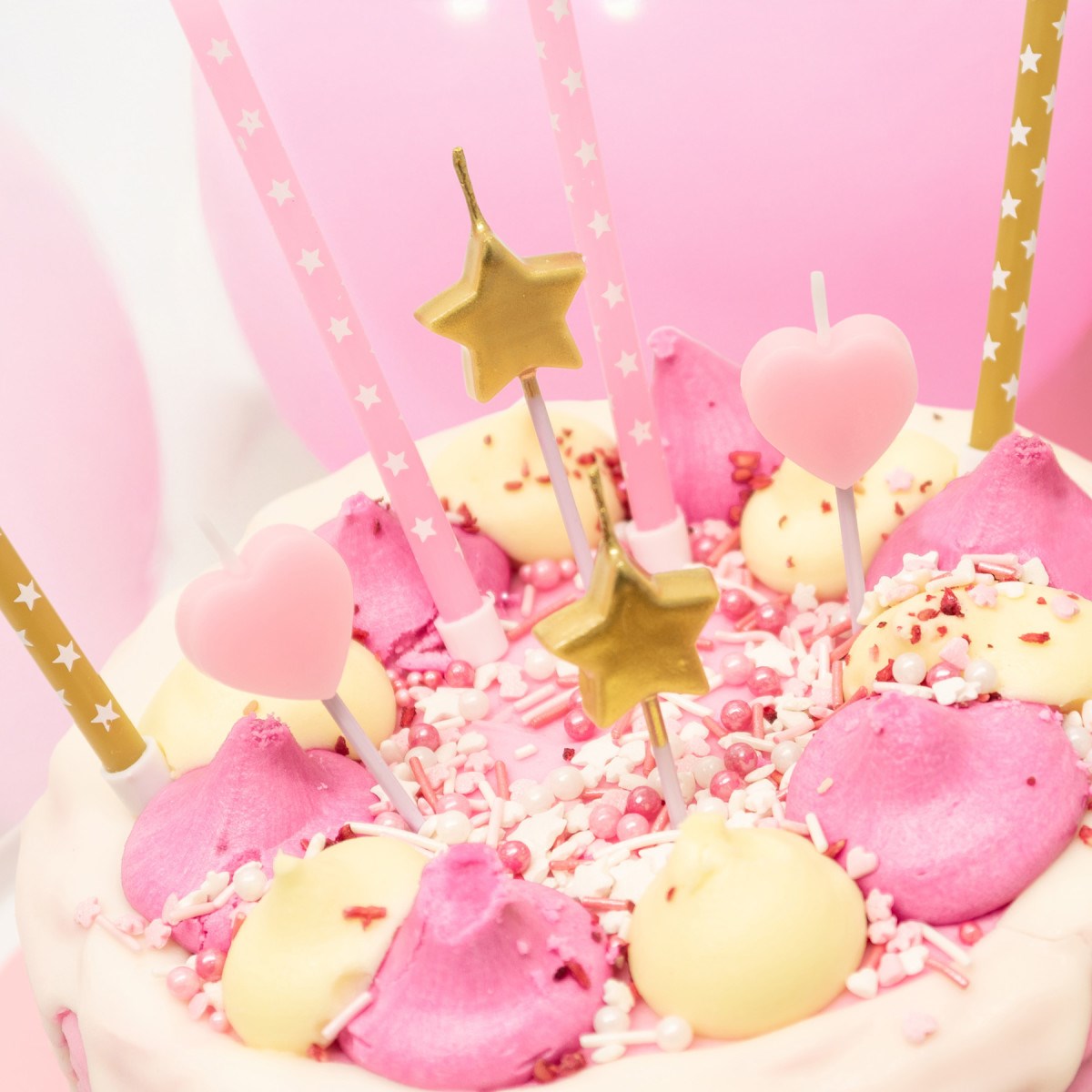 These beautiful candles will compliment and enhance many birthday cake themes! The pack features a selection of tall pink and gold candles with white star print, pink heart, and gold star shaped candles, each with food-safe pics for placing directly on top of a cake. They can be used to elevate a simple cake or compliment a more elaborate design. The different shapes and sizes of candles in the set are a quick and easy way to add interest and fun to the top of cakes.