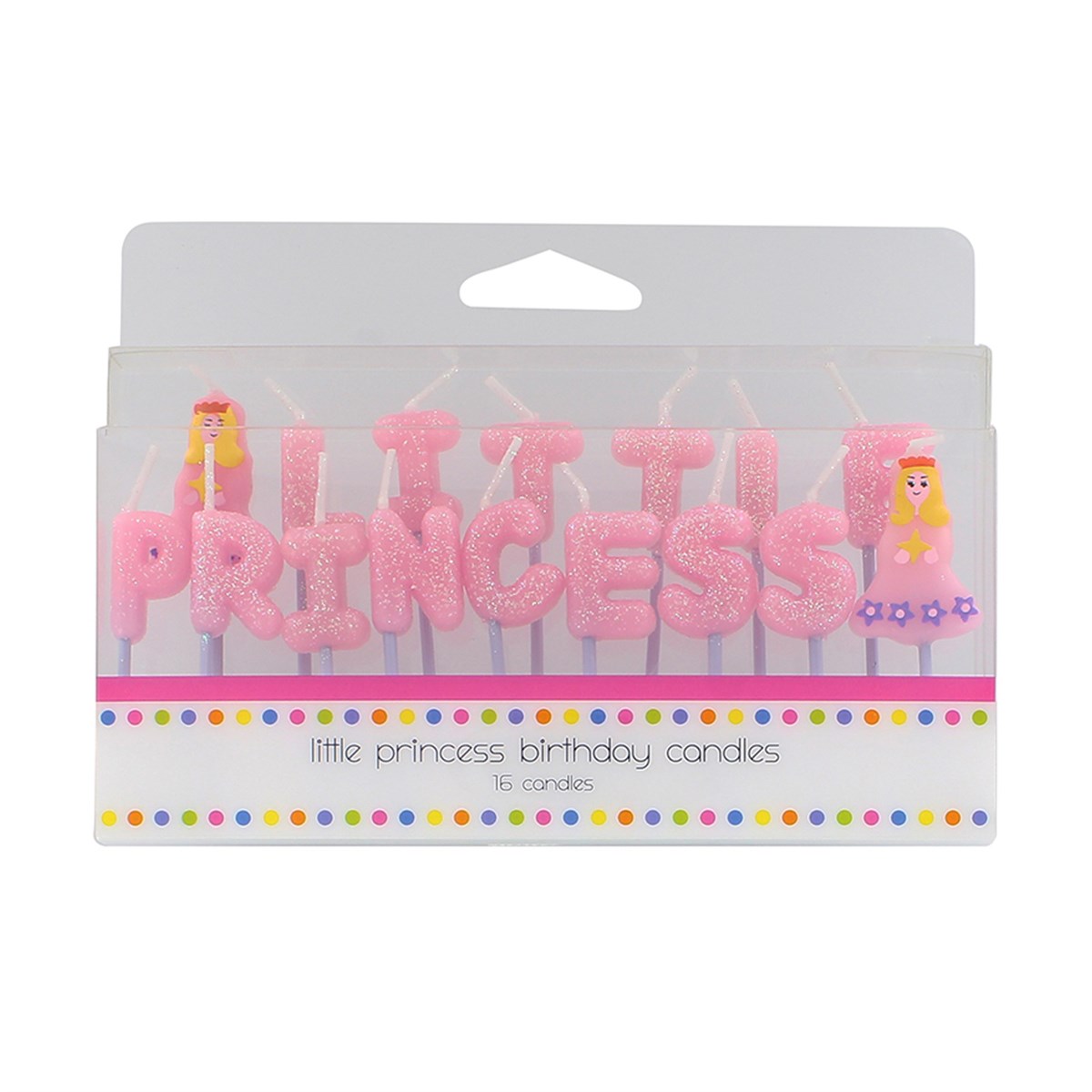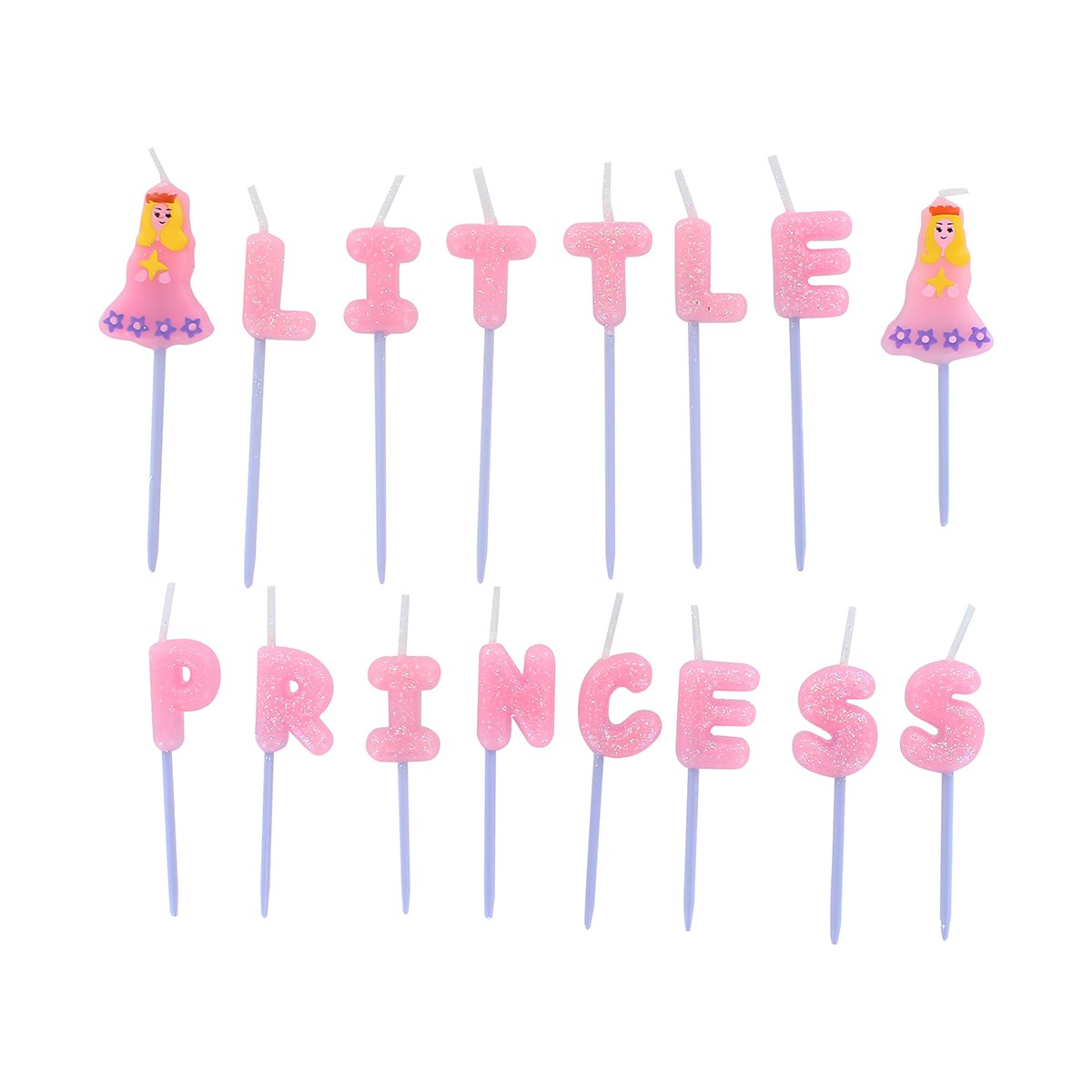The high-quality candles feature pink glitter letters that spell out princess plus two princess design candles.