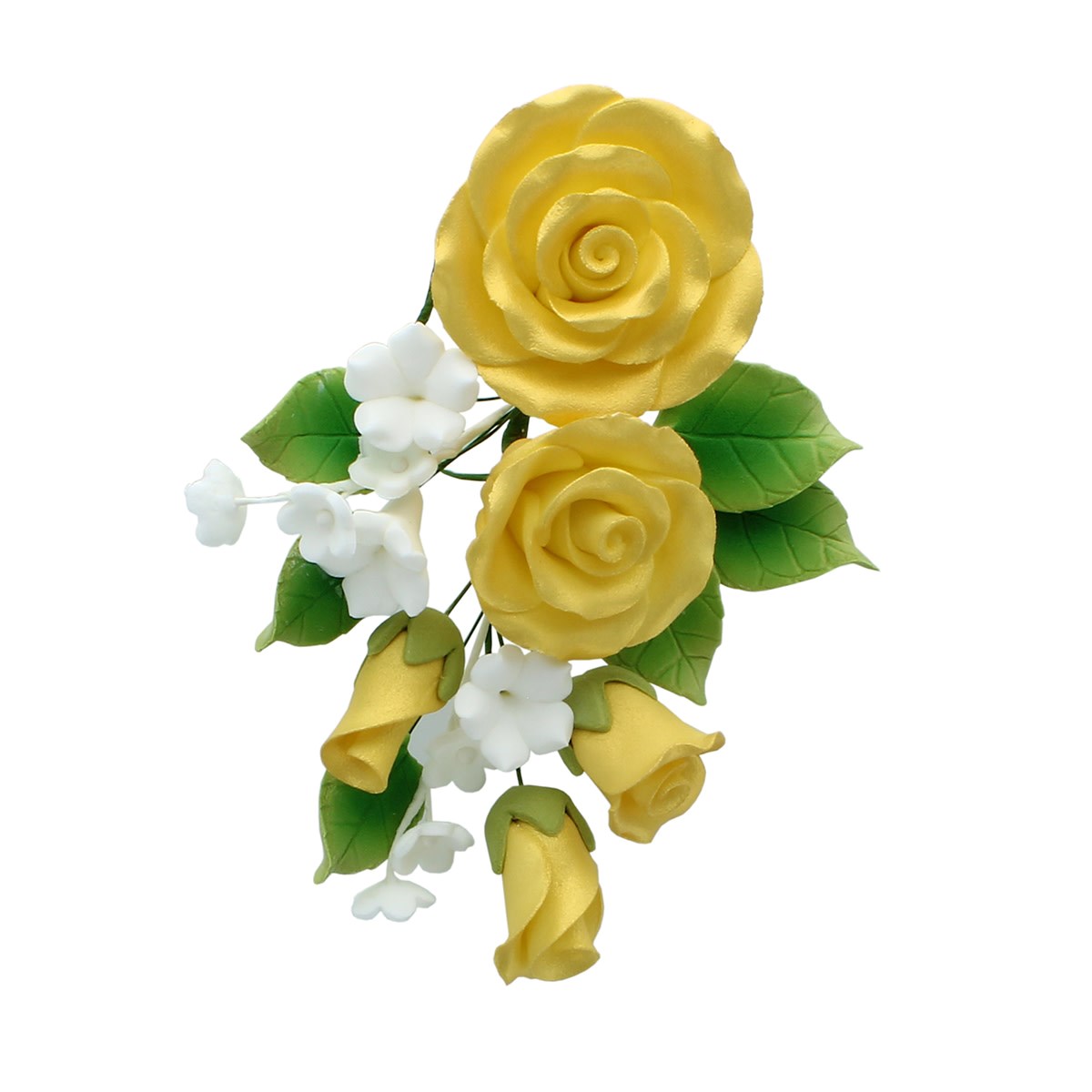 This stunning Gold Rose Sugar Spray consists of 2 open roses, 2 half open and 1 rose bud, with small flowers, buds and leaves and is perfect for adding an instant decoration to wedding and celebration cakes.
