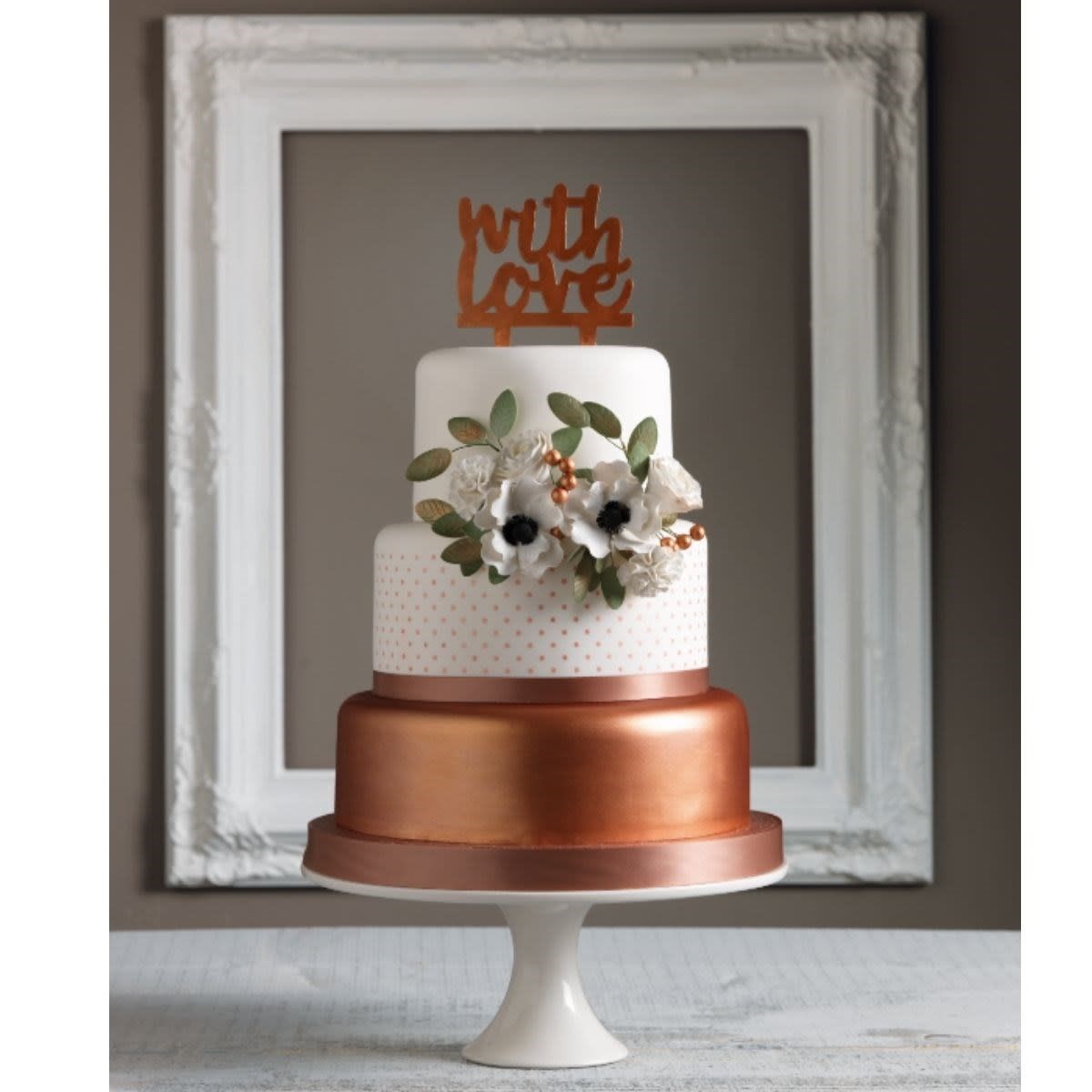 This is a non edible decoration and should be inserted into the cake using a suitably sized flower pic and should be removed from the cake before serving.