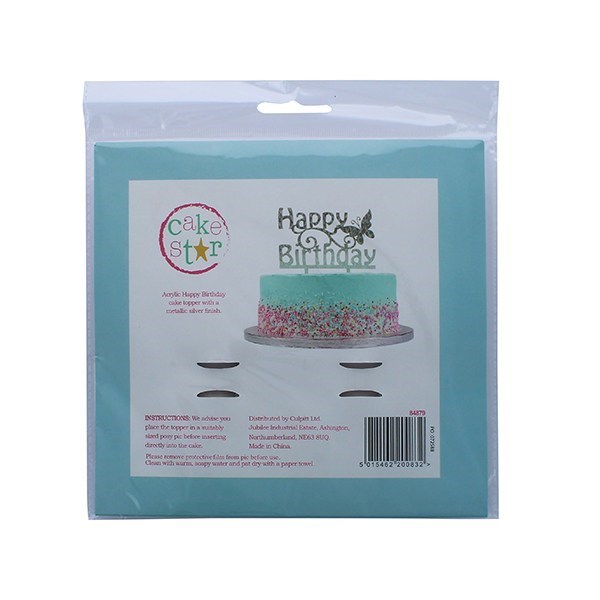 Acrylic Happy Birthday Cake Topper finished with a metallic silver is a perfect adornment for any birthday cake. Simple and easy to create a stunning effect with little effort.