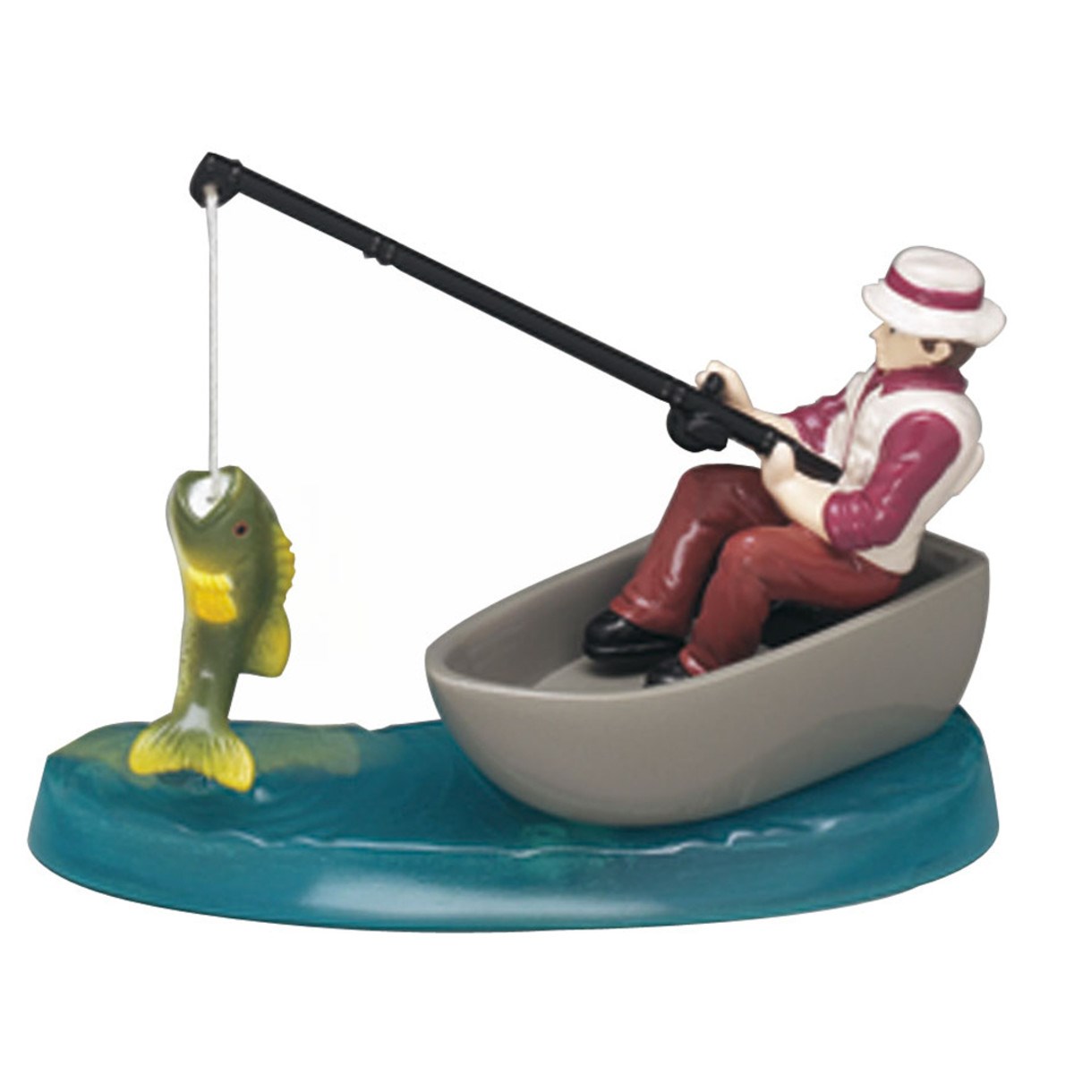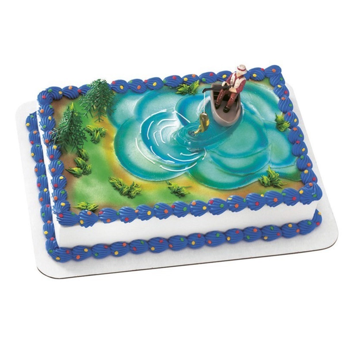 This cake decorating set contains 1 fisherman in a boat (100 x 60mm) and 2 plastic trees.