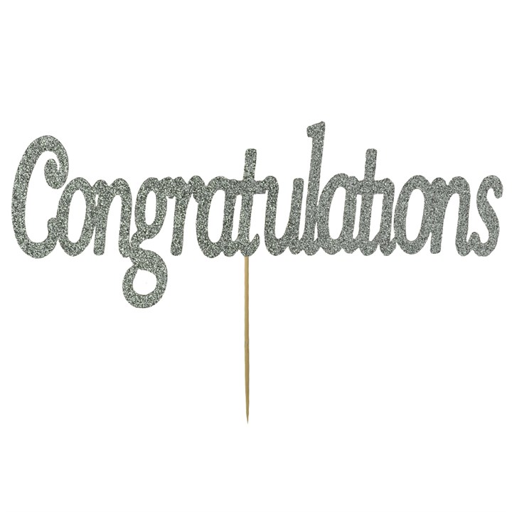 Beautiful silver glitter cake topper, complete with wooden skewer, ready to pop straight into your cake.