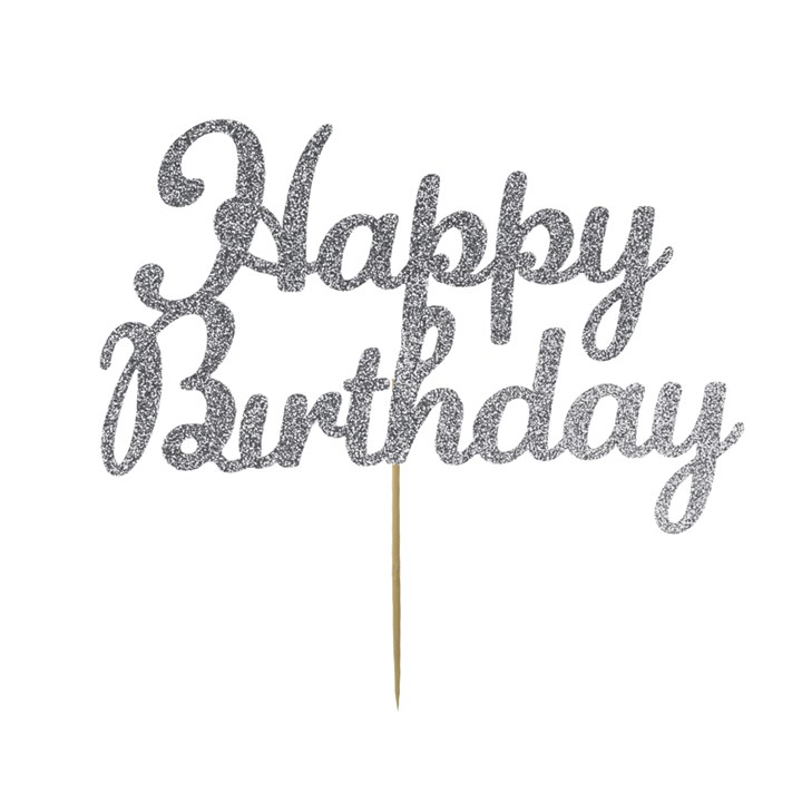 Beautiful silver glitter cake topper, complete with wooden skewer, ready to pop straight into your cake.