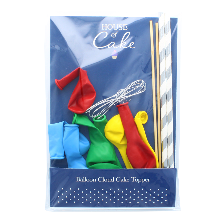 This balloon cloud cake topper is a fantastic addition to any cake! Simply inflate and use the provided wire to string your balloons in place. Only insert wire through uninflated part of the balloon to avoid bursting the balloon. Once completed, attach wire to straws at each end and insert into your cake.