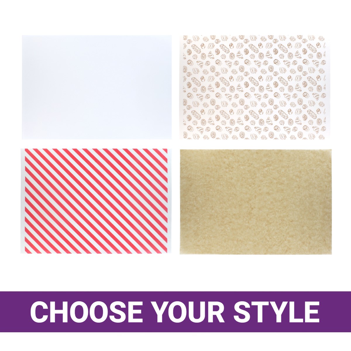 Use printed sheets for easy transition straight from the oven to counter. Being oil and moisture resistant, an eye-catching printed liner will enhance the presentation of finished goods to encourage sales.