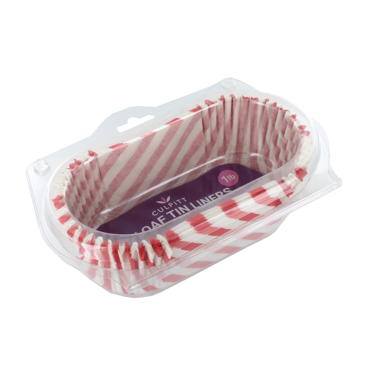 These striking red and white striped loaf liners, made with white printed greaseproof paper (45gsm) are the best way to ensure bakes are released easily from the tin.
