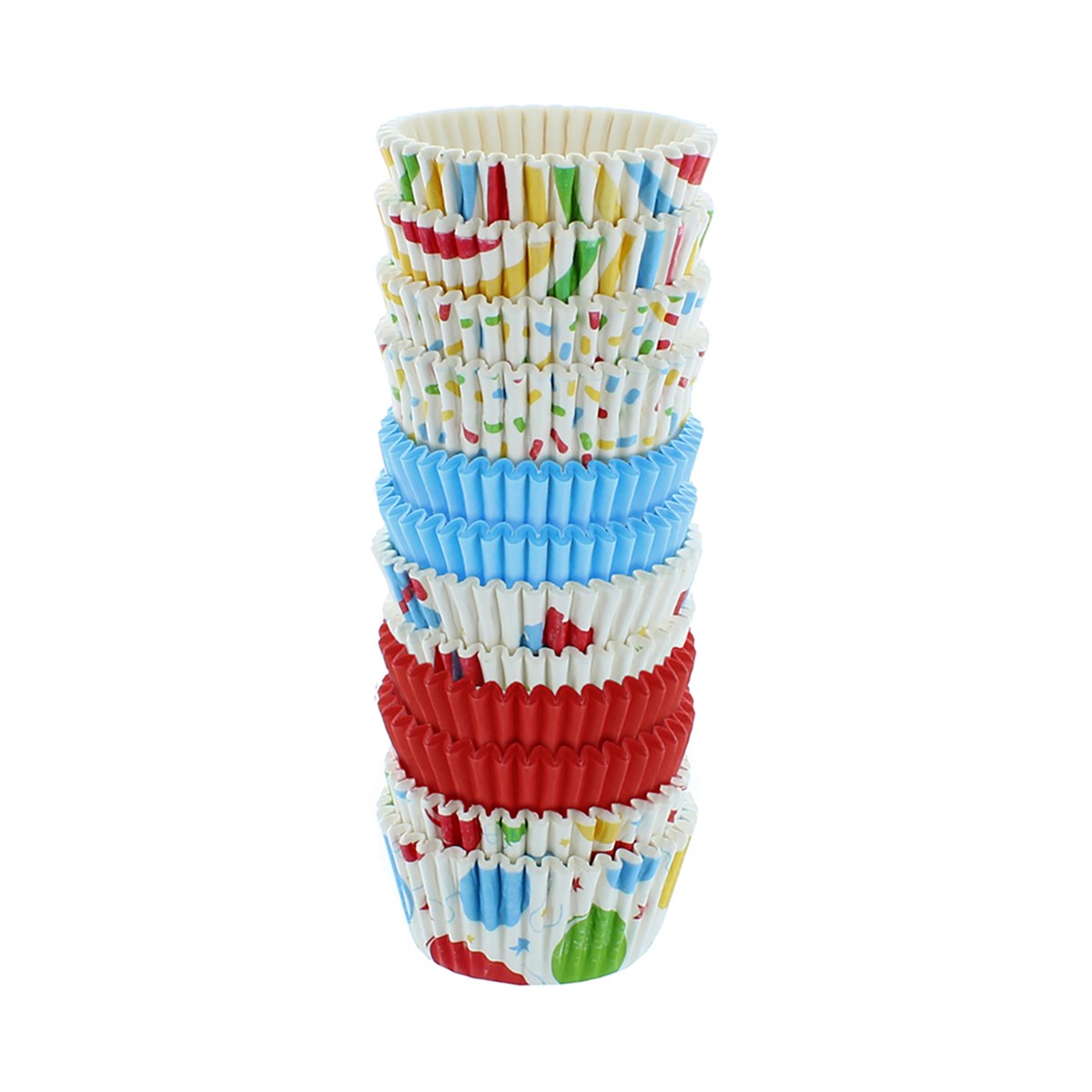 These Birthday themed baking cases by Baked with Love are perfect for presenting bright and bold cupcakes. Made from high-quality odourless greaseproof paper, this pack of 300 cupcake cases features a mixture of eye-catching designs including multicoloured balloons, presents, stripes, and confetti.
