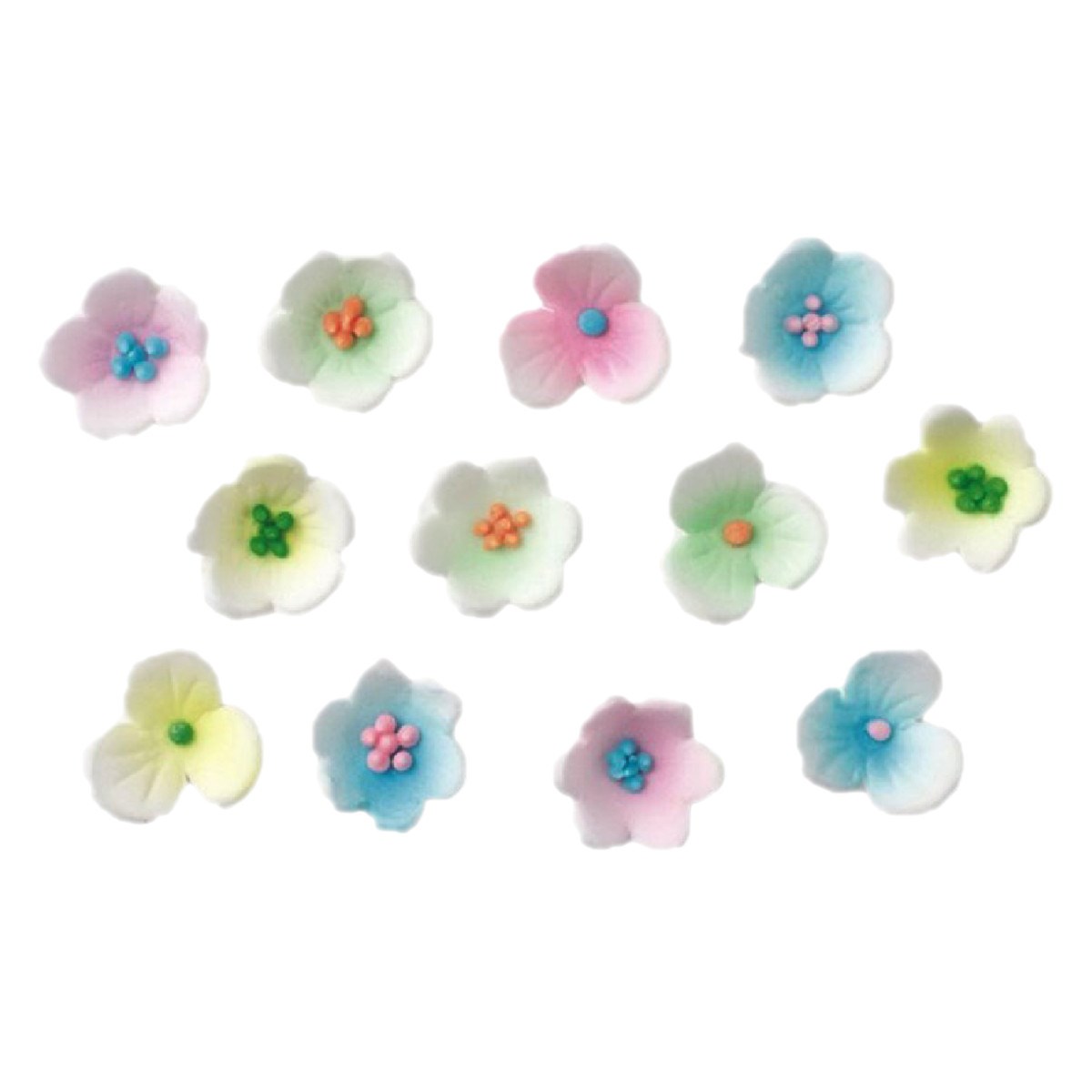 Potato starch; sugar; rice flour; emulsifiers: E414, E466; glucose; colours: E102, E122, E133, E129
