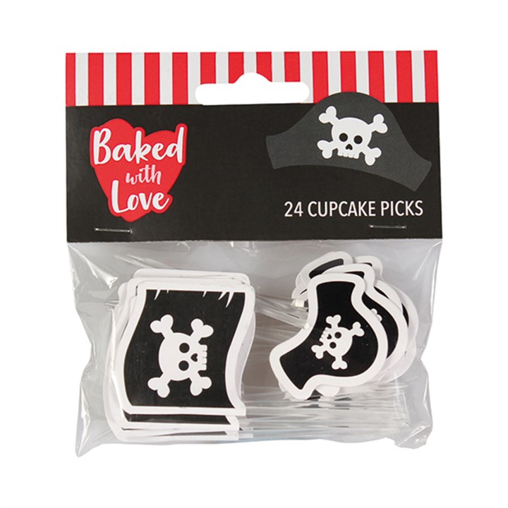 This pack contains 24 decorative pics, 12 of each design. They are ideal for decorating cupcakes and make the perfect food decoration for your Pirate themed birthday party