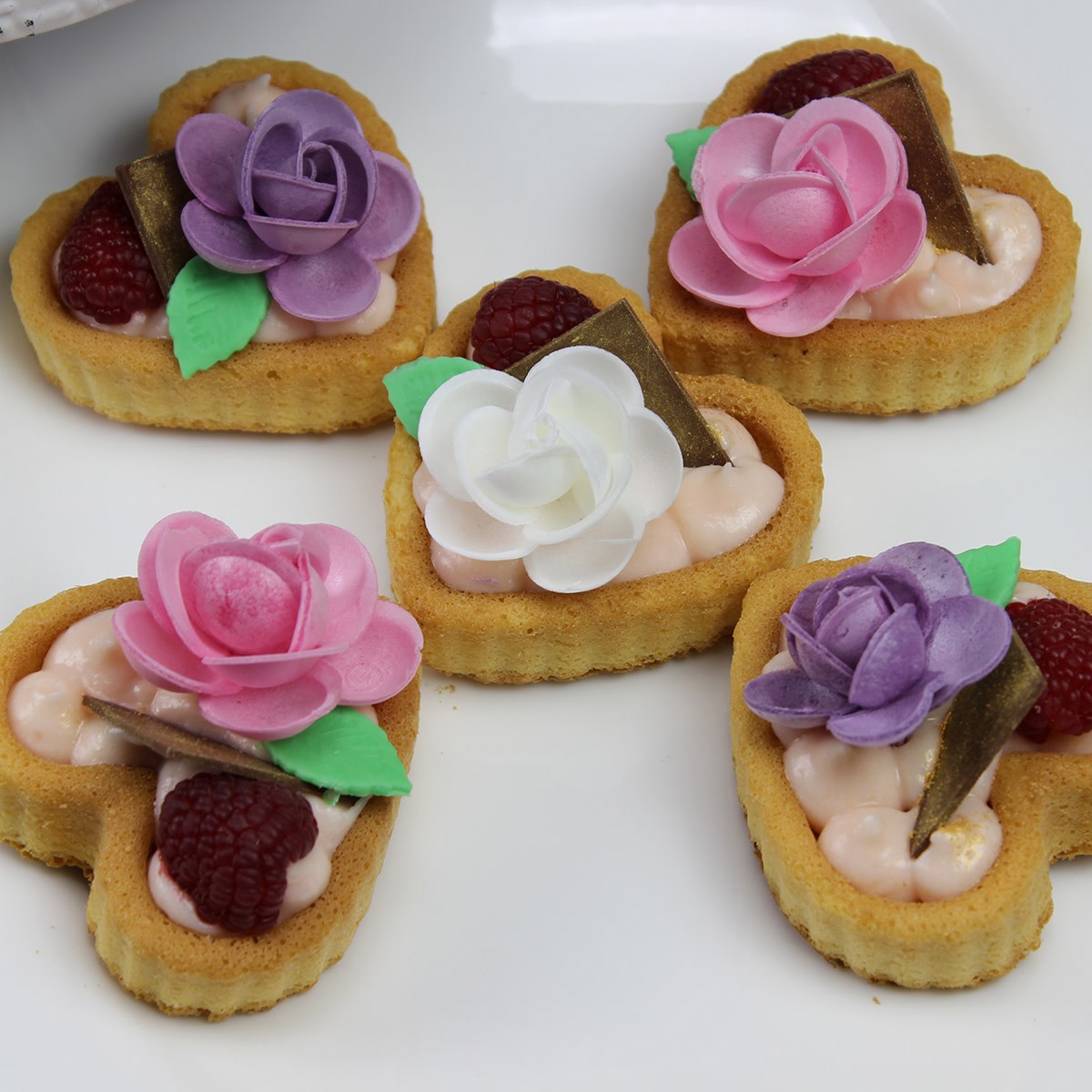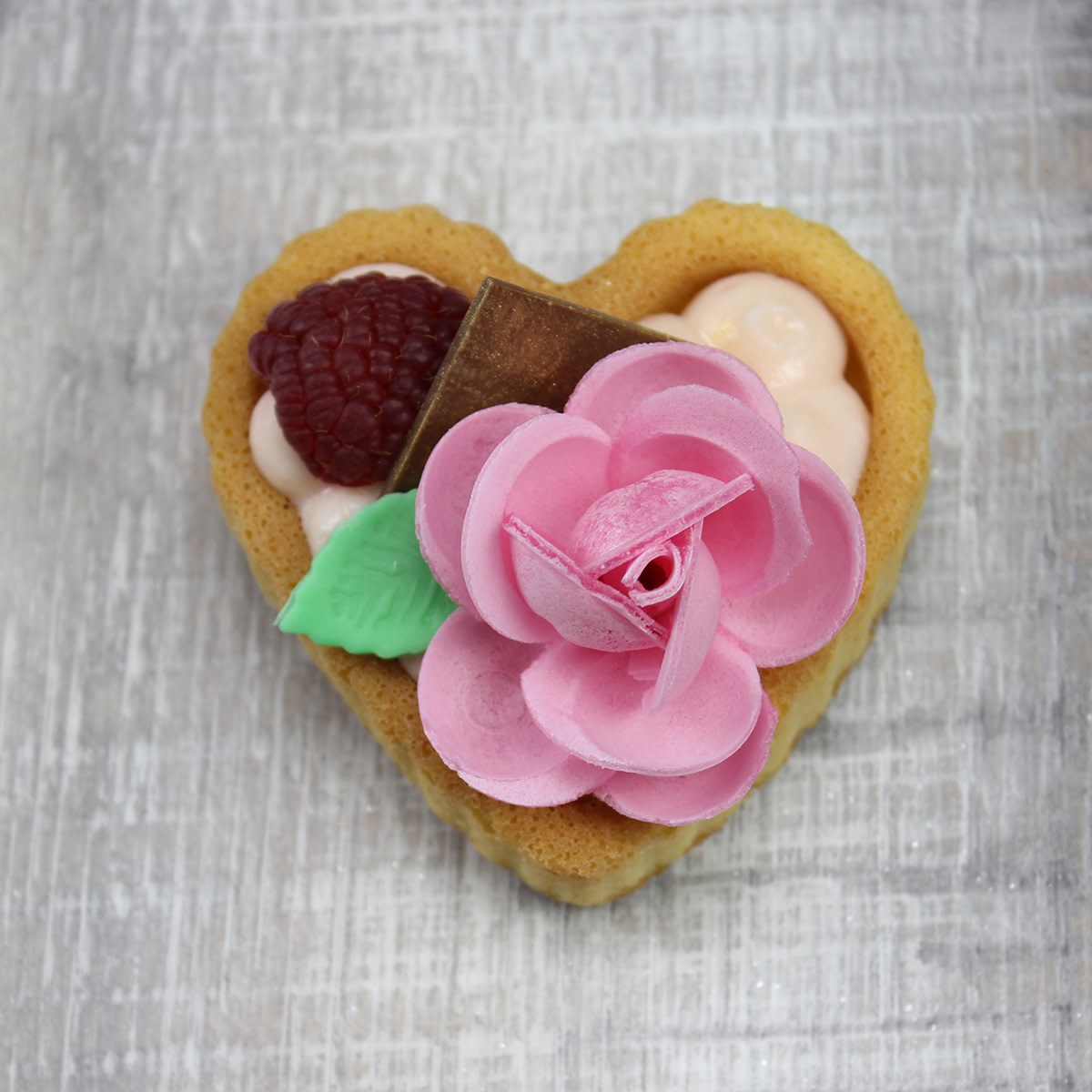 Corn starch; water; colours: cochineal E120, brilliant blue E133
