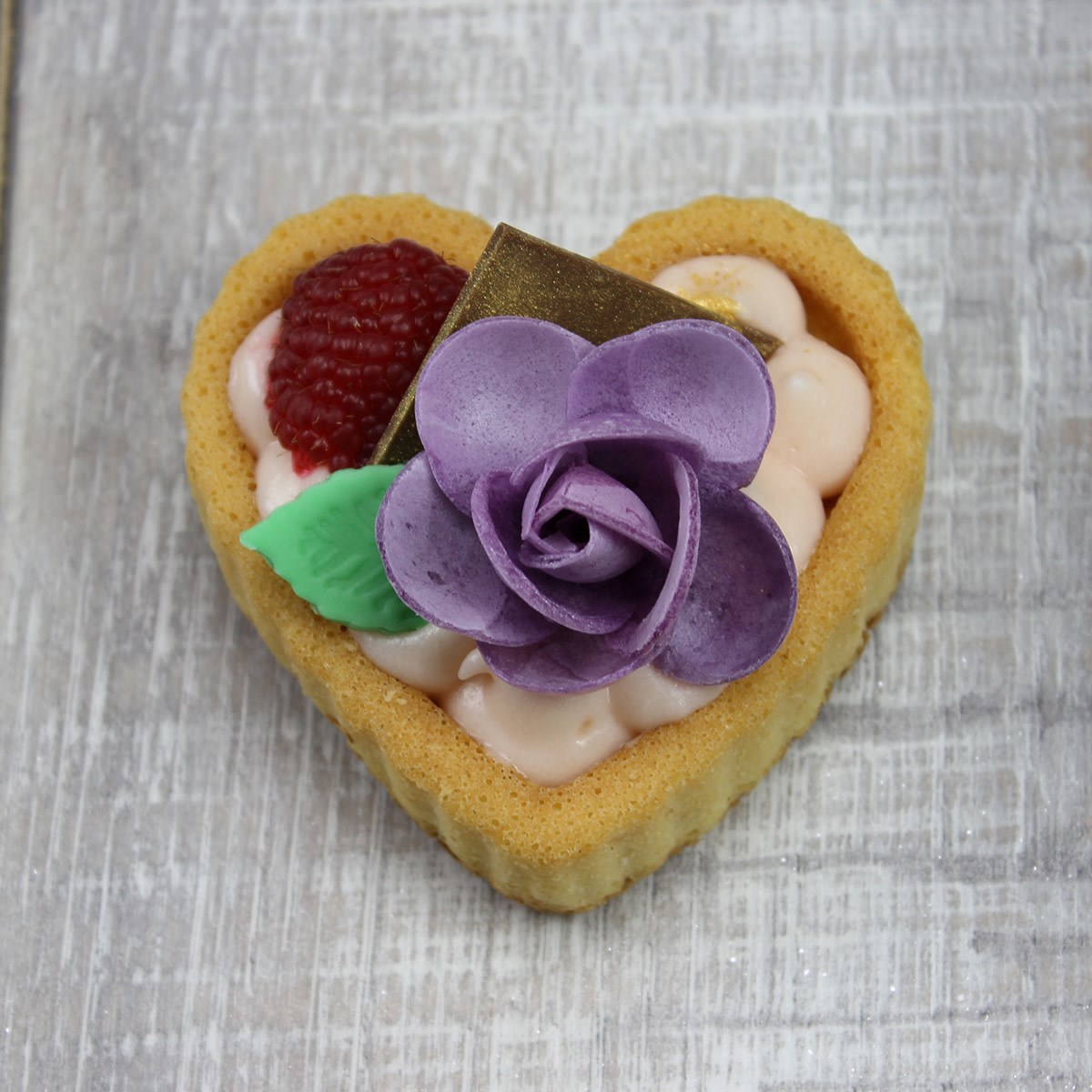 Corn starch; water; colours: cochineal E120, brilliant blue E133