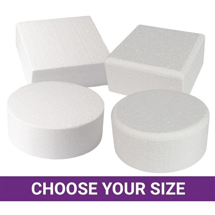 Polystyrene Cake Dummies are made from Styrofoam and are great for practicing cake decorating, using as a decorated cake tier to save cost or as a cake separator. These dummies come in a variety of sizes and depths and also straight edged or bevelled.