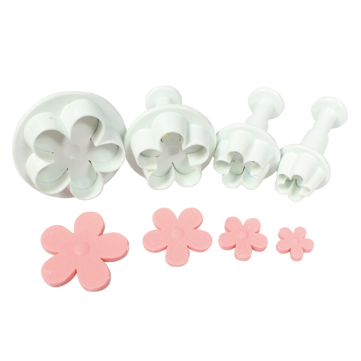 Create pretty five flowers and shapes and embossed decorations with this Cake Star plunger cutter set. With 4 cutters in the set, this collection is the perfect way to create small, medium and large floral cake decorations and cookie toppers.