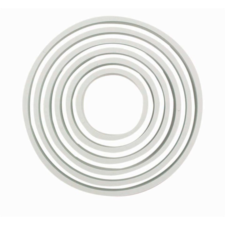 To create a traditional round cookie press one of these six different sized circles in to your cookie dough. Also use these cutters with sugar paste to create a matching circular decoration.