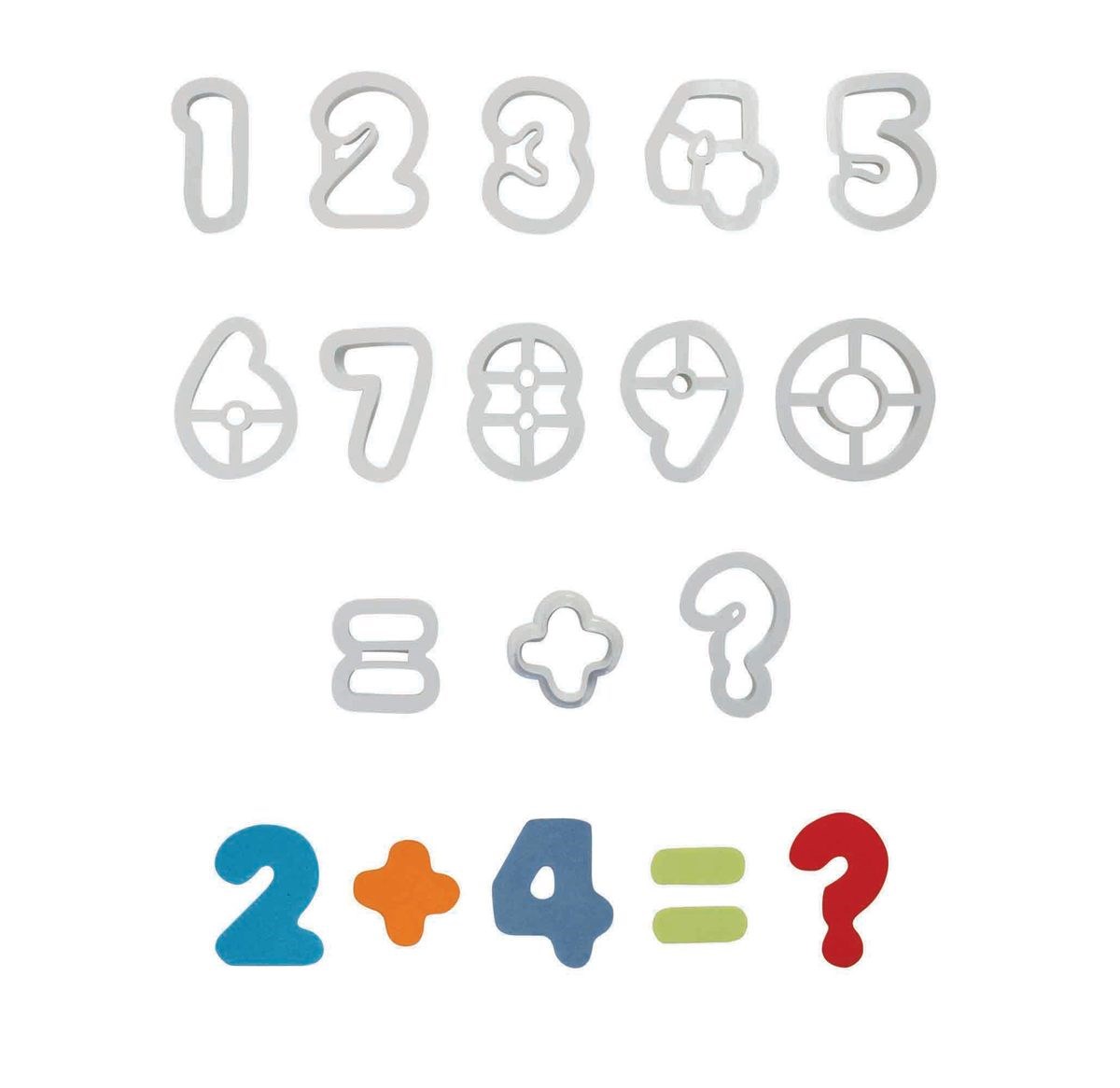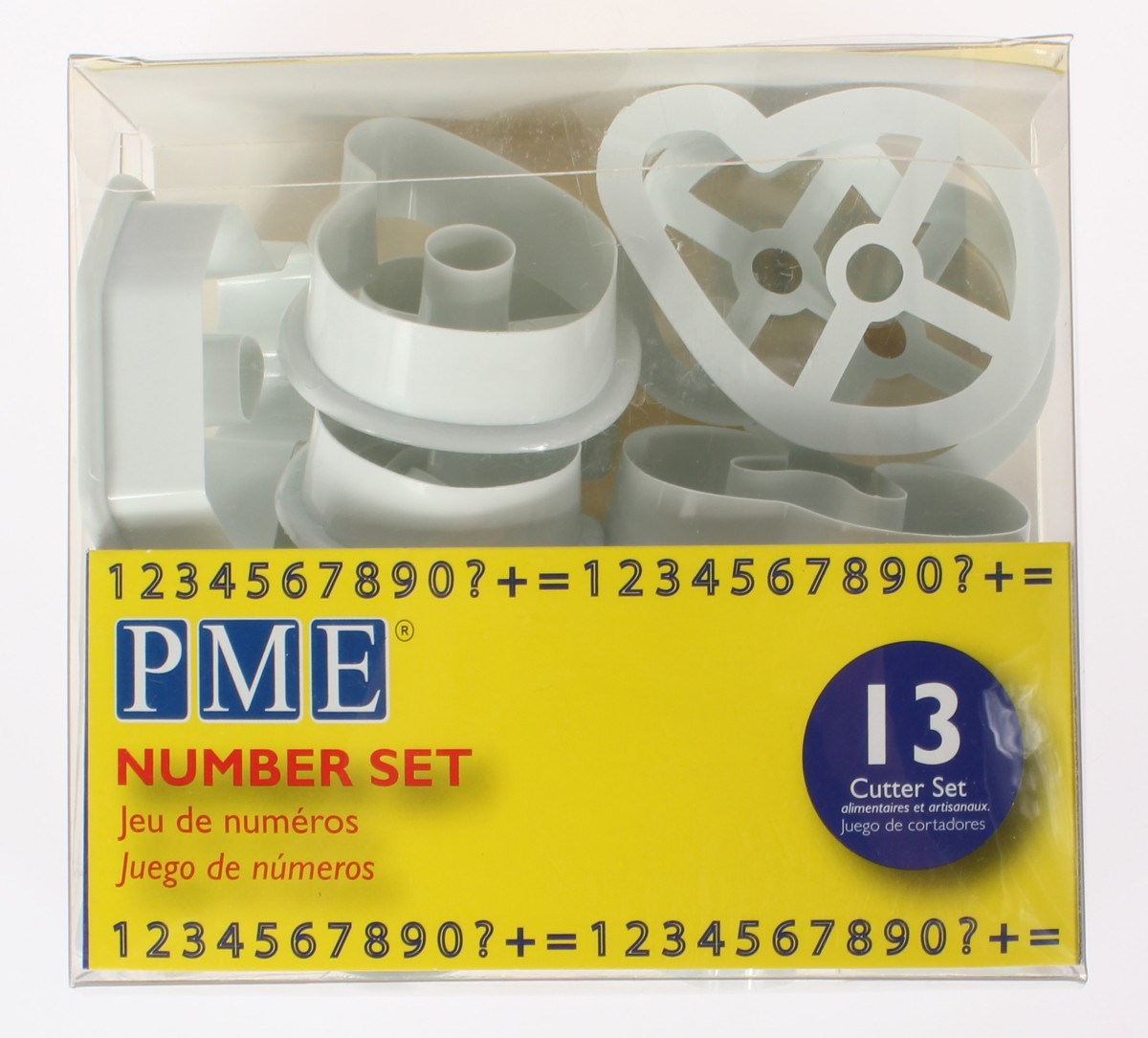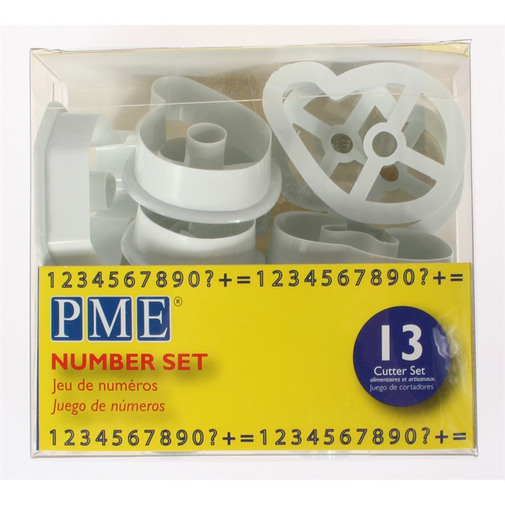 This set of plastic number cutters includes 0 to 9, question mark, plus sign and equals sign. You could add a child's age to a girl's or boy's birthday cake or add sugarpaste numbers to an anniversary cake.