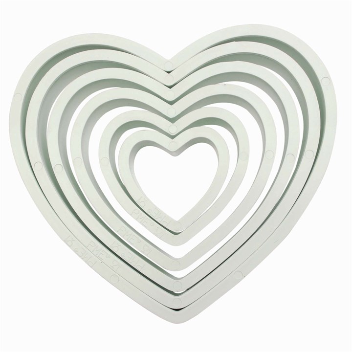 Create various sized cookies use this sweet set of 6 hearts. A great way to make edible gifts for Valentine's day.