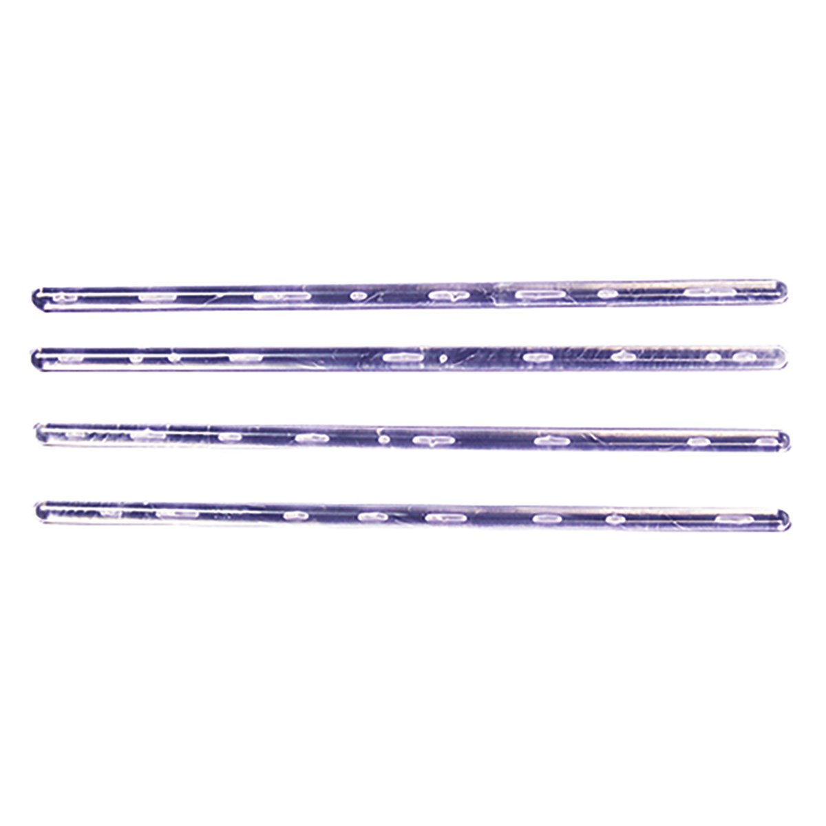 These clear plastic dowels are 200mm (8'') long and come in a pack of 4. The dowels can be shorted to suit your cake.