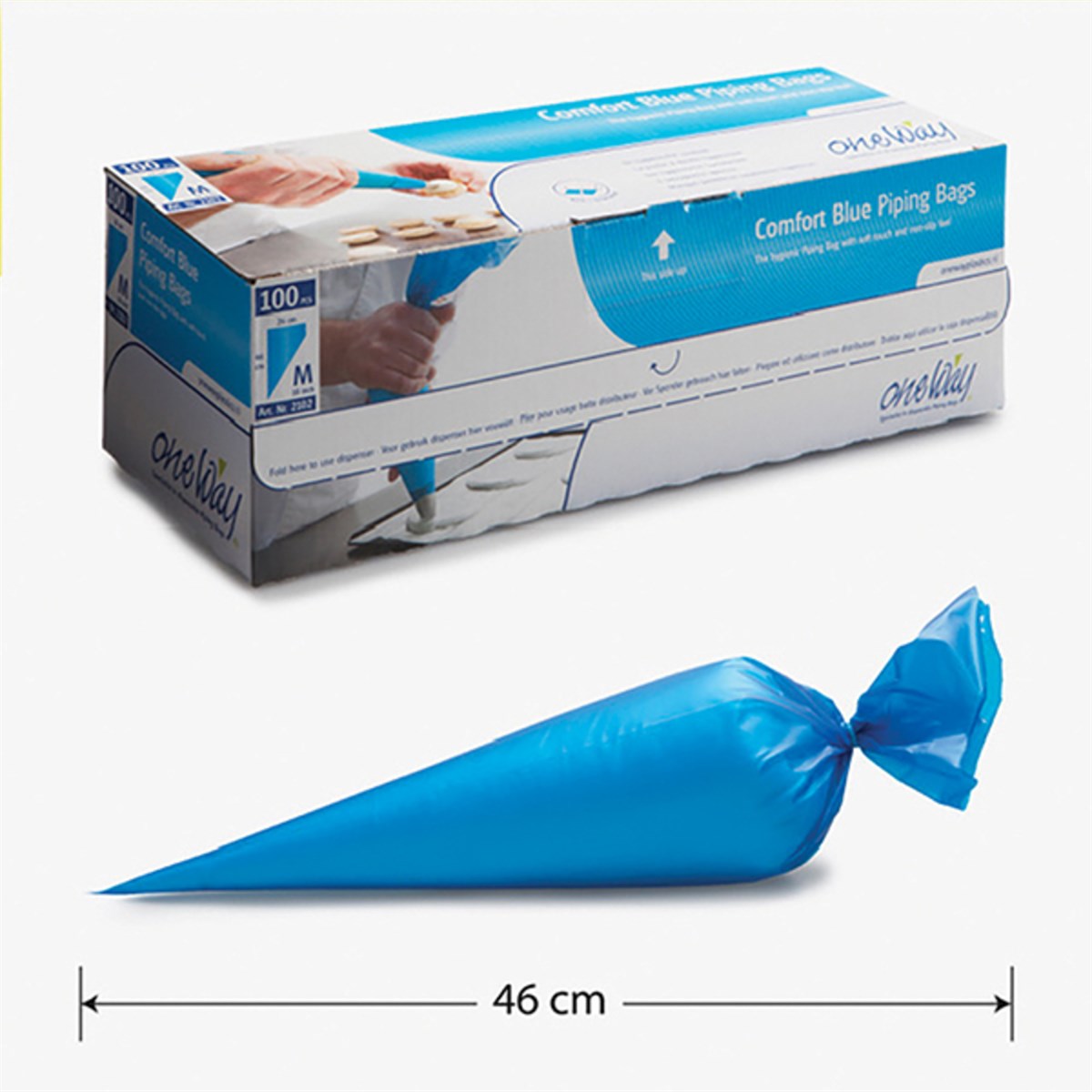 The Comfort Blue piping bag guarantees efficiency in the kitchen and optimum food safety. Disposable piping bags always come straight off the roll, or clean from the box, fit snugly in the hand, and are also very easy to use. Safety is extremely important in all professional (large) kitchens or bakeries.