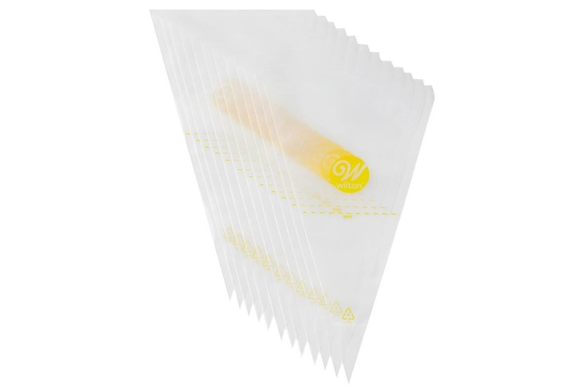 The Wilton disposable decorating bags are made of strong, flexible plastic. This makes them perfect for working with buttercream, as for working with royal icing and buttercream icing. You can also you the bags for micro-wave melting candy melts.