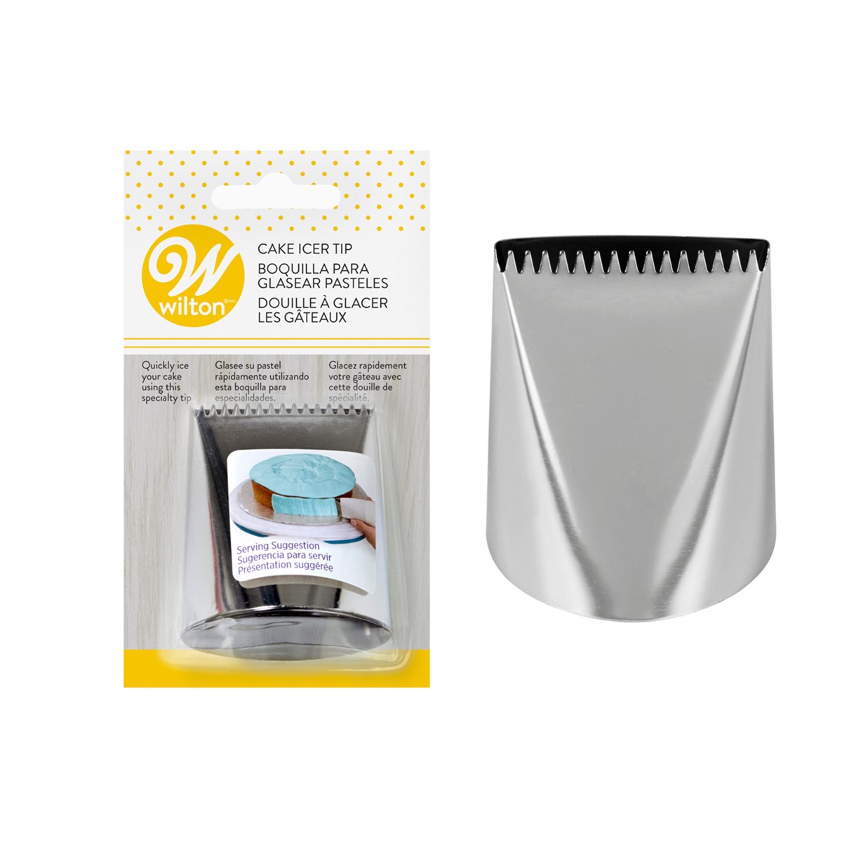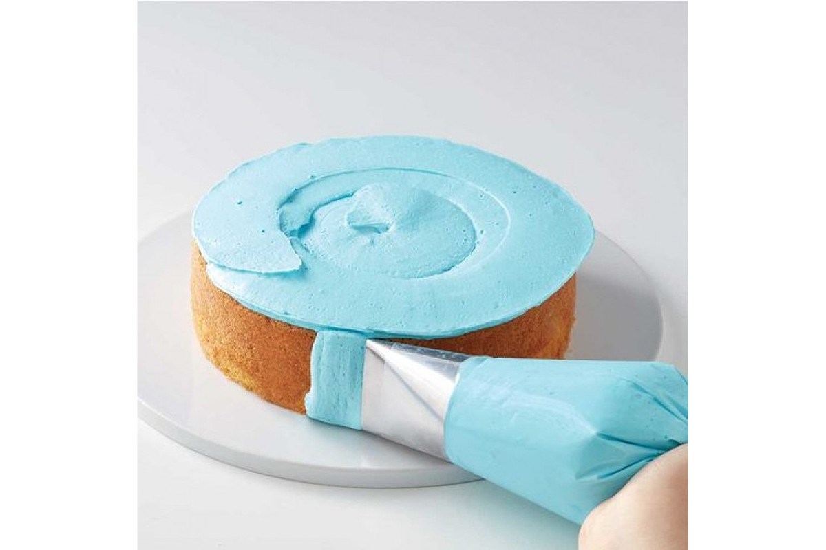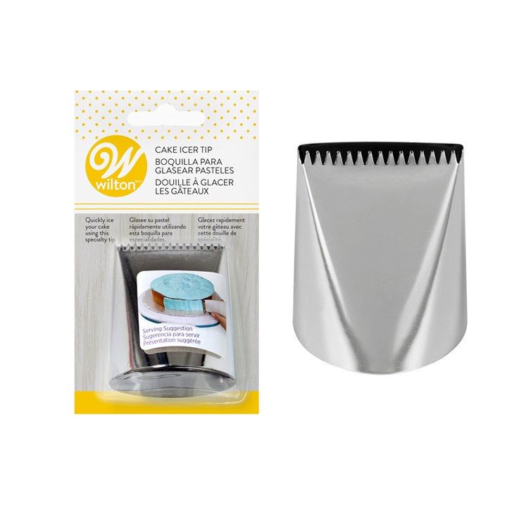 Quickly ice the sides and top of your cake using the Wilton Cake Icer Tip. While no coupler is needed for the Icer Tip, this oversize tip is easiest to use with a 16 in. or larger Wilton decorating bag. You'll love how easy it is to initially cover your cake with icing, and once you've covered your cake with icing using this tip, just smooth with a spatula, and then decorate or serve! This tip saves you time decorating and helps you avoid cake crumbs getting into your icing, since you cover the surface and then smooth the overlaps.