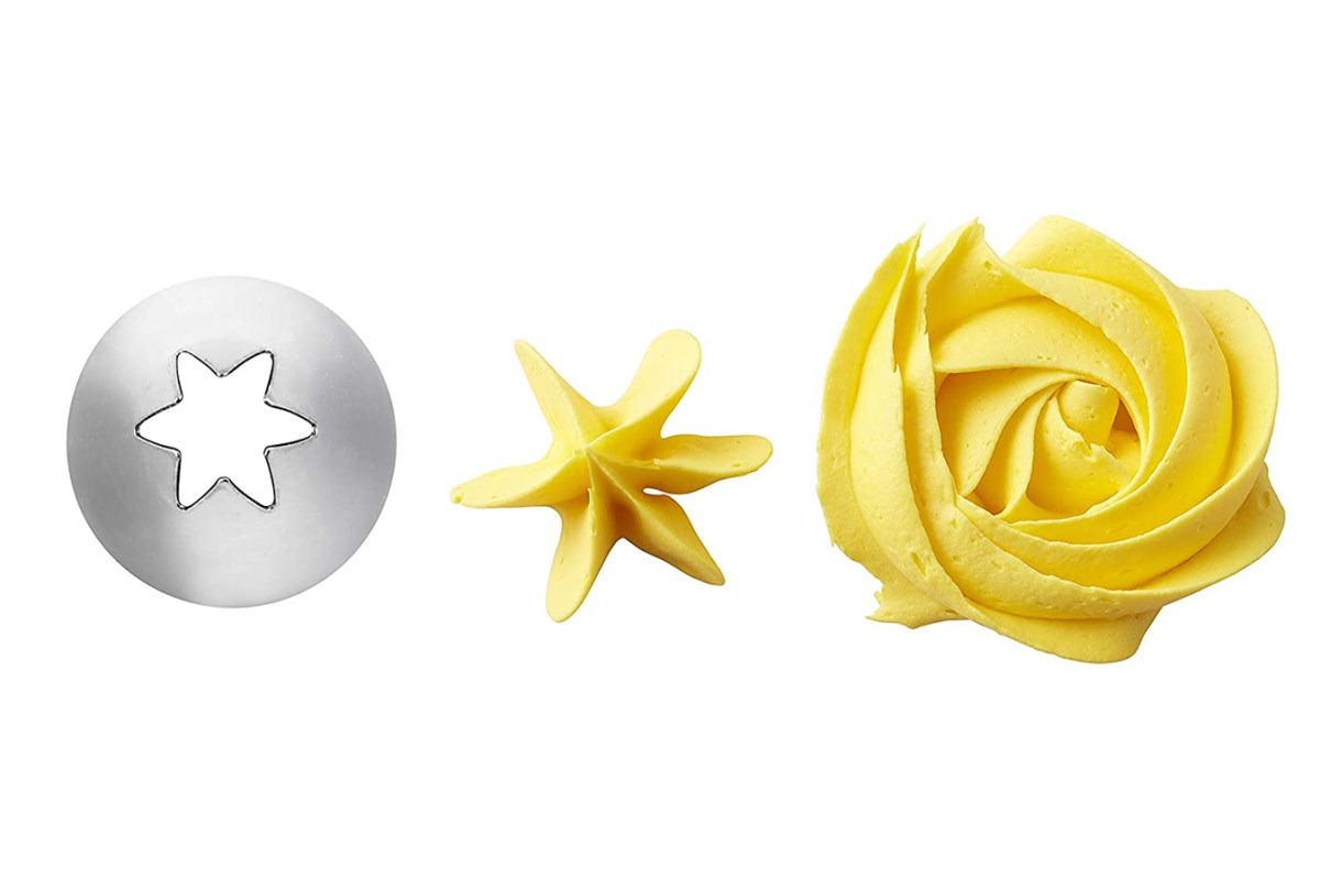Decorate cupcakes with a classic icing swirl using Open Star Piping Tip 1M. Use this versatile tip to pipe stars, flowers and borders. Tip works with standard bags and couplers. Star techniques and drop flowers; the finely cut teeth create decorations with many ridges.