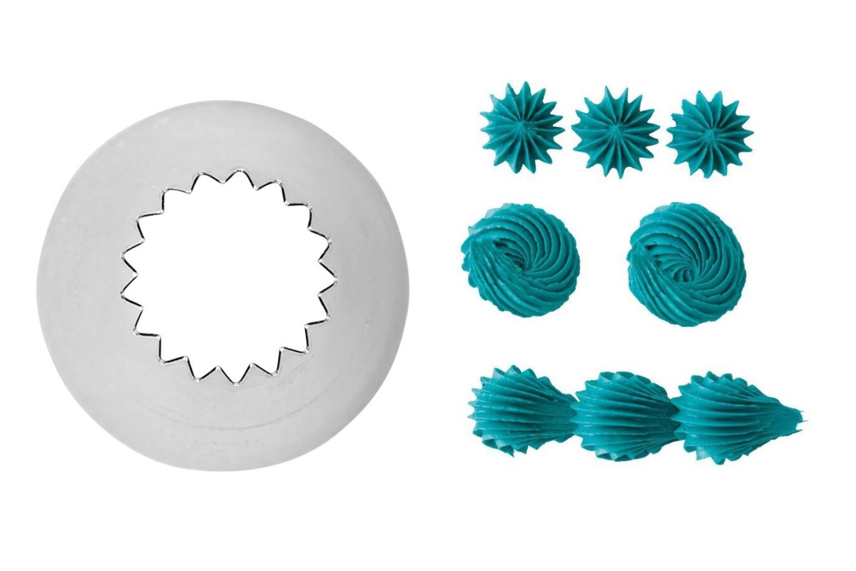 Use this Open Star Piping Tip No. 8B to decorated cakes, cookies and other treats with a variety of techniques. Tip No. 21 is great for making ruffled borders, rosettes, stars and flowers. All tips work with standard bags and couplers.