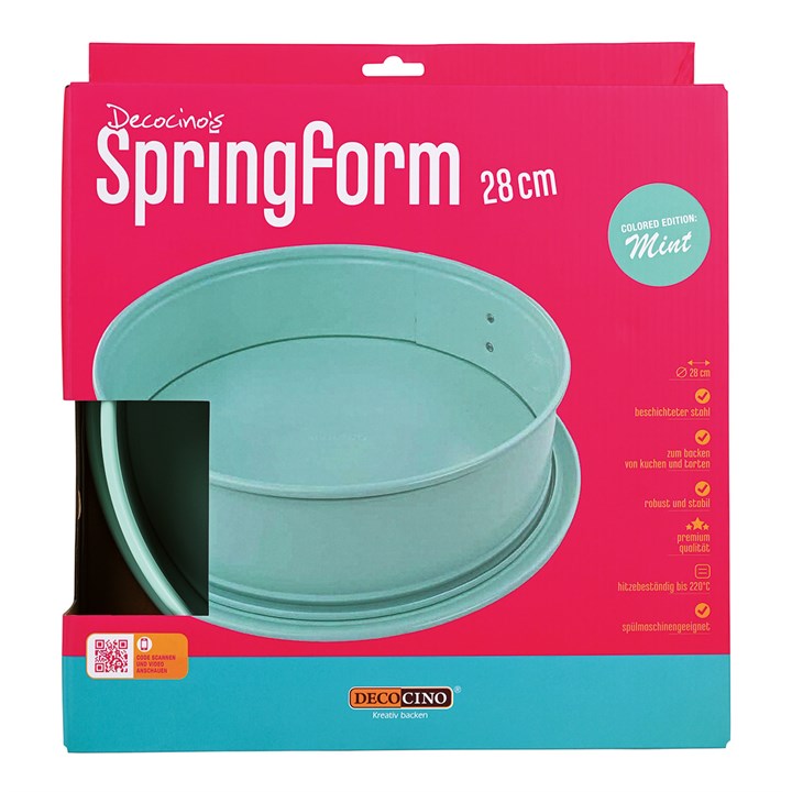 Featuring details such as a curved stainless steel clasp and the extra emphasized, rounded edges, this Decocino springform pan with a diameter of 280mm is made of carbon steel and sealed all around with a non-stick coating.