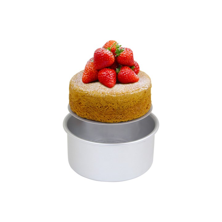 A quick and easy way to release your cakes with these PME Loose Bottom Cake Tins. Simply place the cake tin onto a jar or container smaller than the base and allow the pan to drop down and release the cake. The circular base can also be used to display the cake!