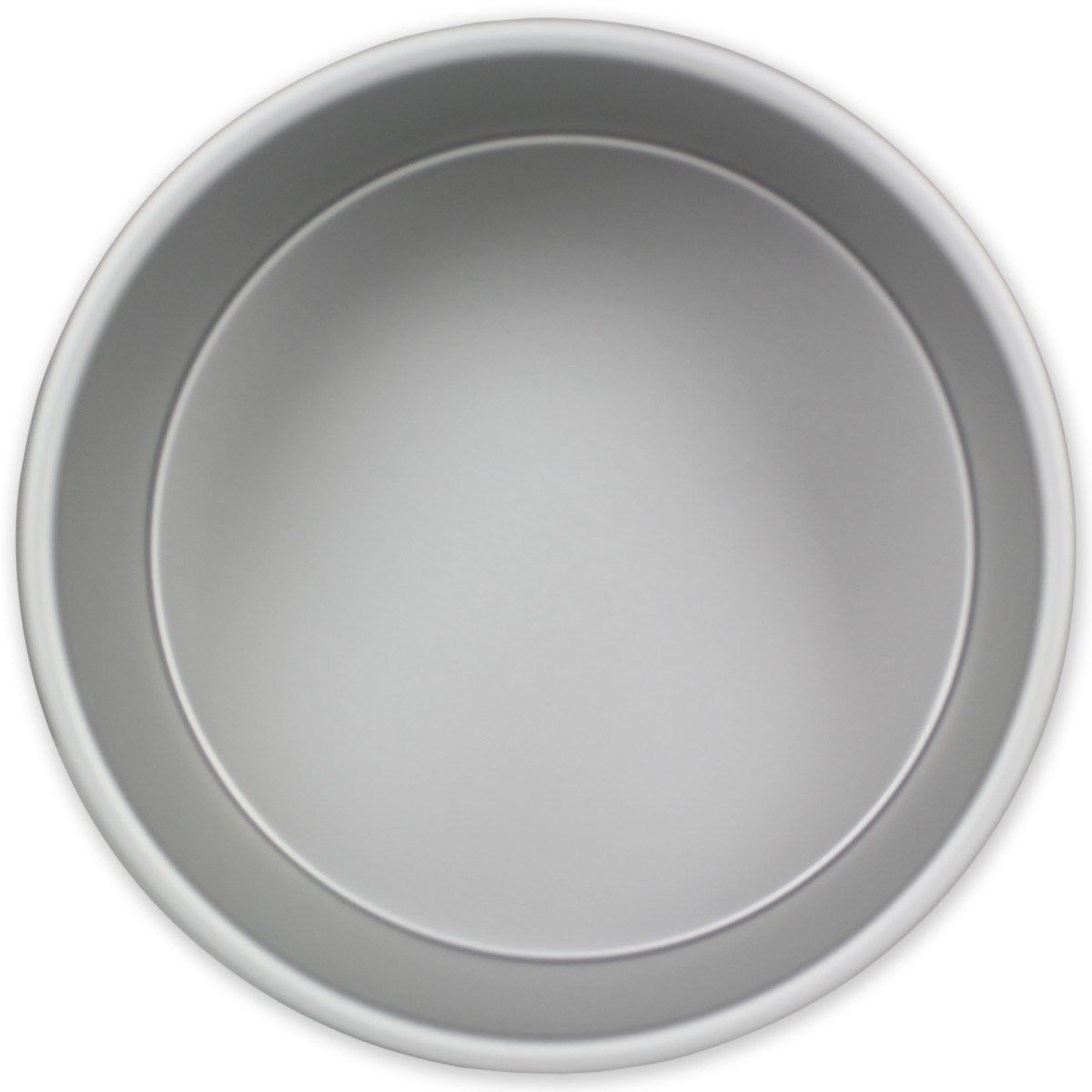 8'' Seamless anodised aluminium tin. Professional quality, straight sides with no seams. Top hemmed rim for strength and durability. 8'' diameter x 4'' deep.