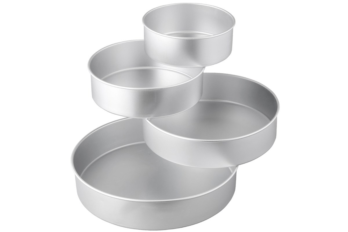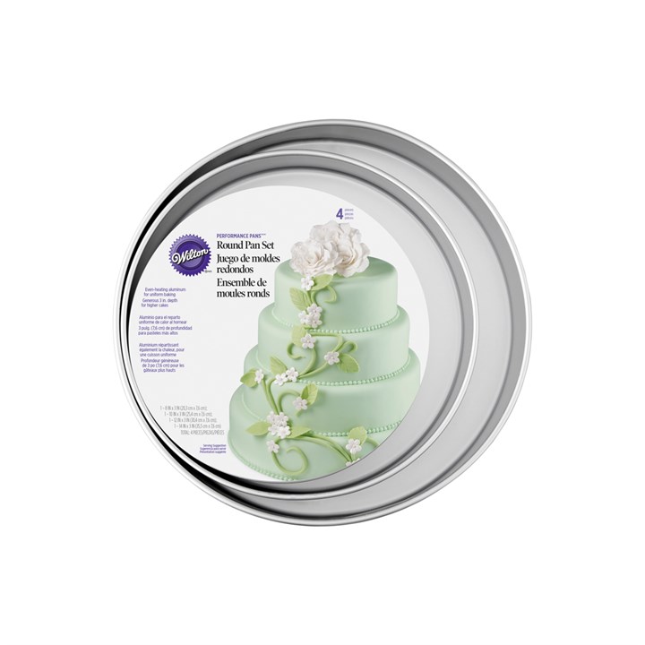 For all your cake baking needs. This set of four Wilton cake pans made of durable, even heating, aluminium were built to last for many years to come. From a simple layer cakes to a tiered creation, there's a pan for that.