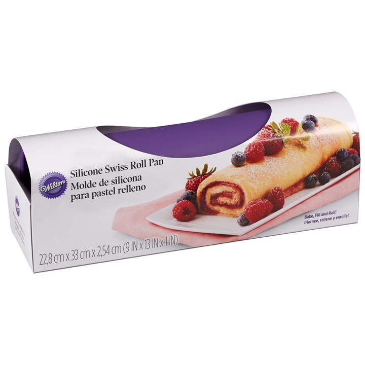 It couldn't be easier to make a delicious Swiss roll with this Wilton Silicone Swiss Roll Pan. The flexible sides and non-stick surface allow you to roll your cake right from the rectangular tray itself so you can easily make roulade, festive yule logs, jelly roll, swiss roll, or even fudge and chocolate!