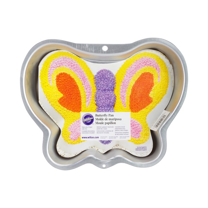 This Wilton Butterfly Cake Tin makes it easy to bake your own butterfly shaped cake and comes complete with easy to follow instructions. Pipe your baked butterfly as per the illustration on the included instructions, or cover with sugarpaste in the colours of your choice.