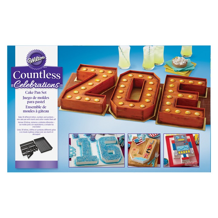With this Wilton Cake Mould set, you can make cakes in the shape of all 26 letters of the alphabet or any numbers from 0-9 using the included inserts.