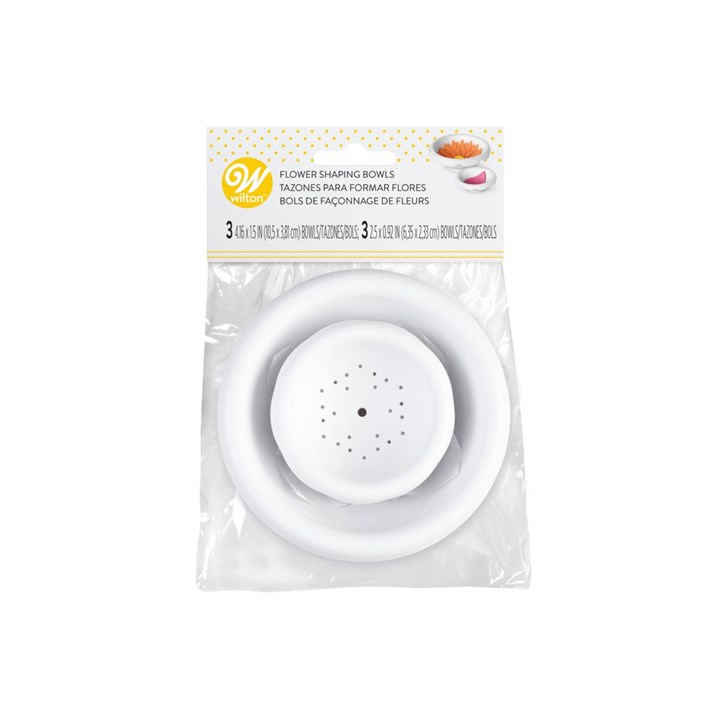 Create realistic, soft, just-bloomed fondant and gum paste flowers using Flower Shaping Bowls. This assorted flower shaping bowl set includes small bowls and medium bowls for shaping various size flowers easy. Includes 3 medium bowls: 10.5cm x 3.81cm and 3 small bowls: 6.35cm x 2.33cm.