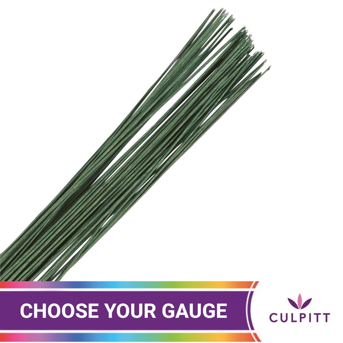 Dark green, paper covered wires, ideal for making sugar flowers. There are 20 wires per pack, 1 pack is included per box.
